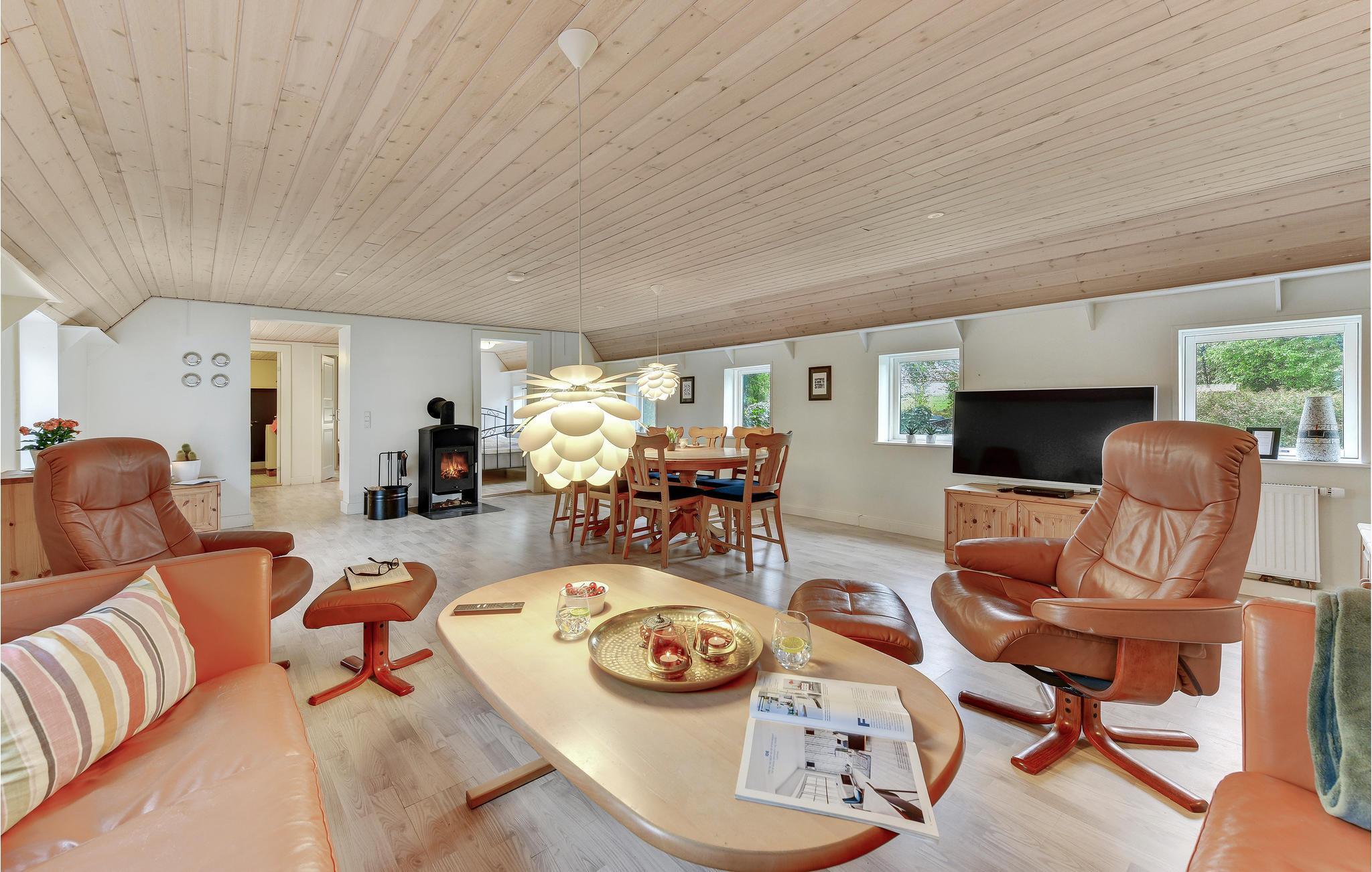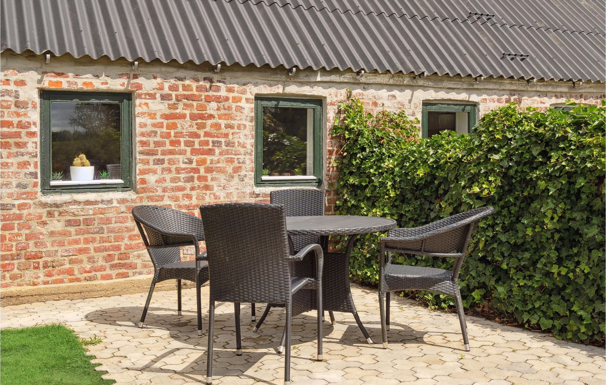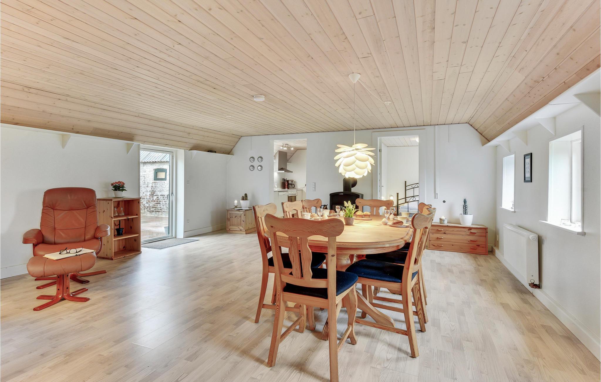 Her er dejlige soveværelser med plads til hele familien. Køkken, stue og badeværelse med bruser, vaskemaskine og tørretumbler, ligesom I kan duellere ved bordtennisbordet. Udenfor er der flere dejlige terrasser og en komplet lukket solgård. Huset opvarmes med oliefyr, og der forefindes en brændeovn som supplerende varmekilde. Der er både tysk, dansk og skandinavisk tv samt internet i huset.