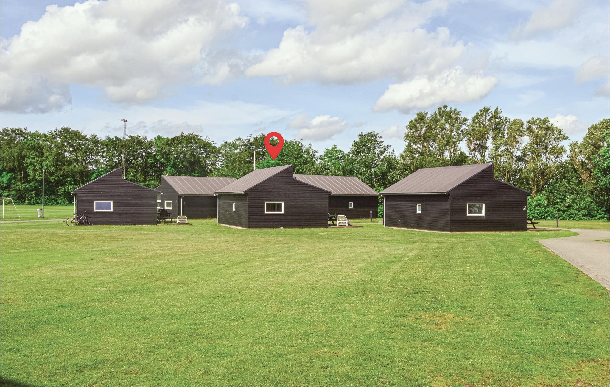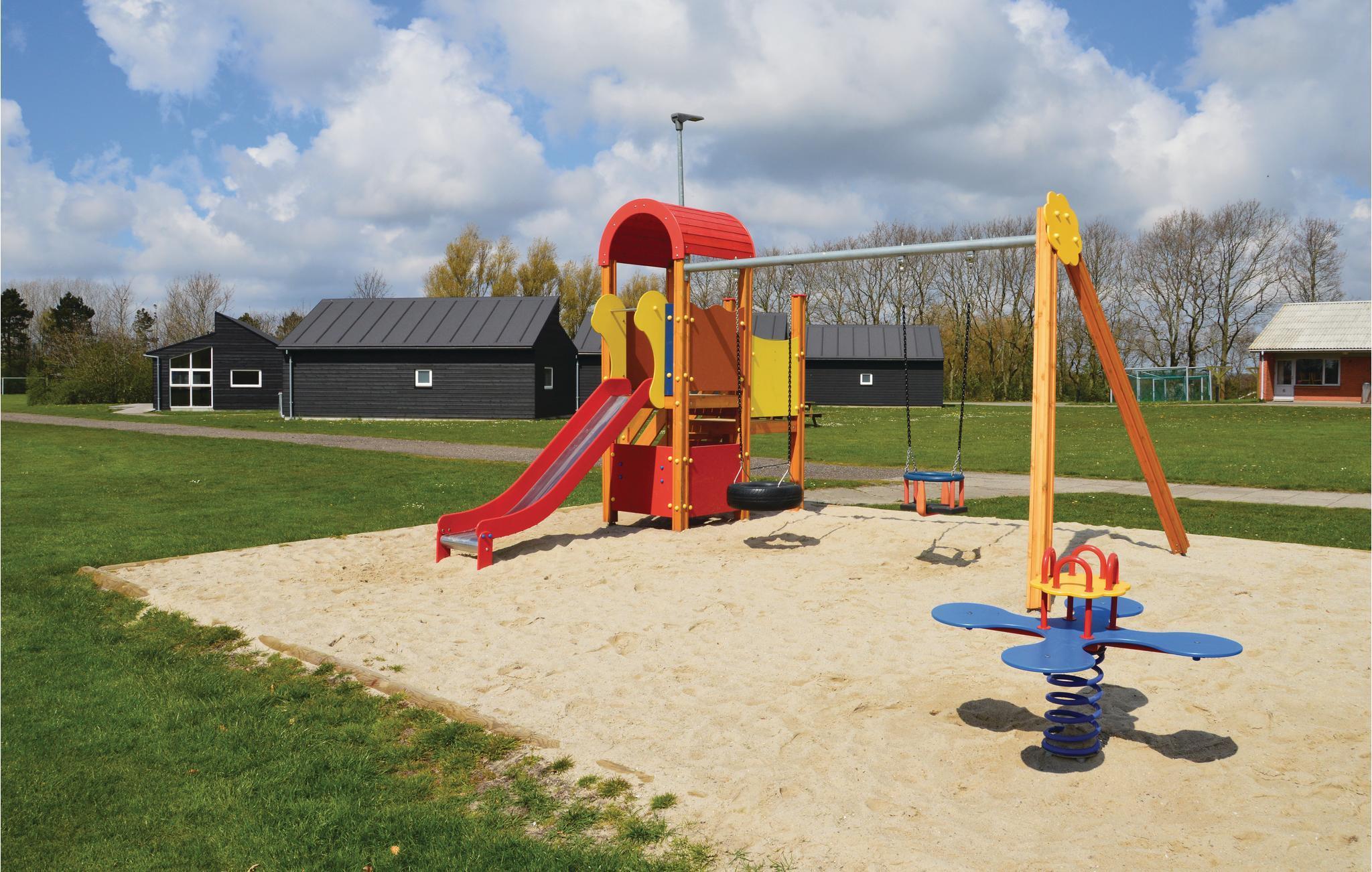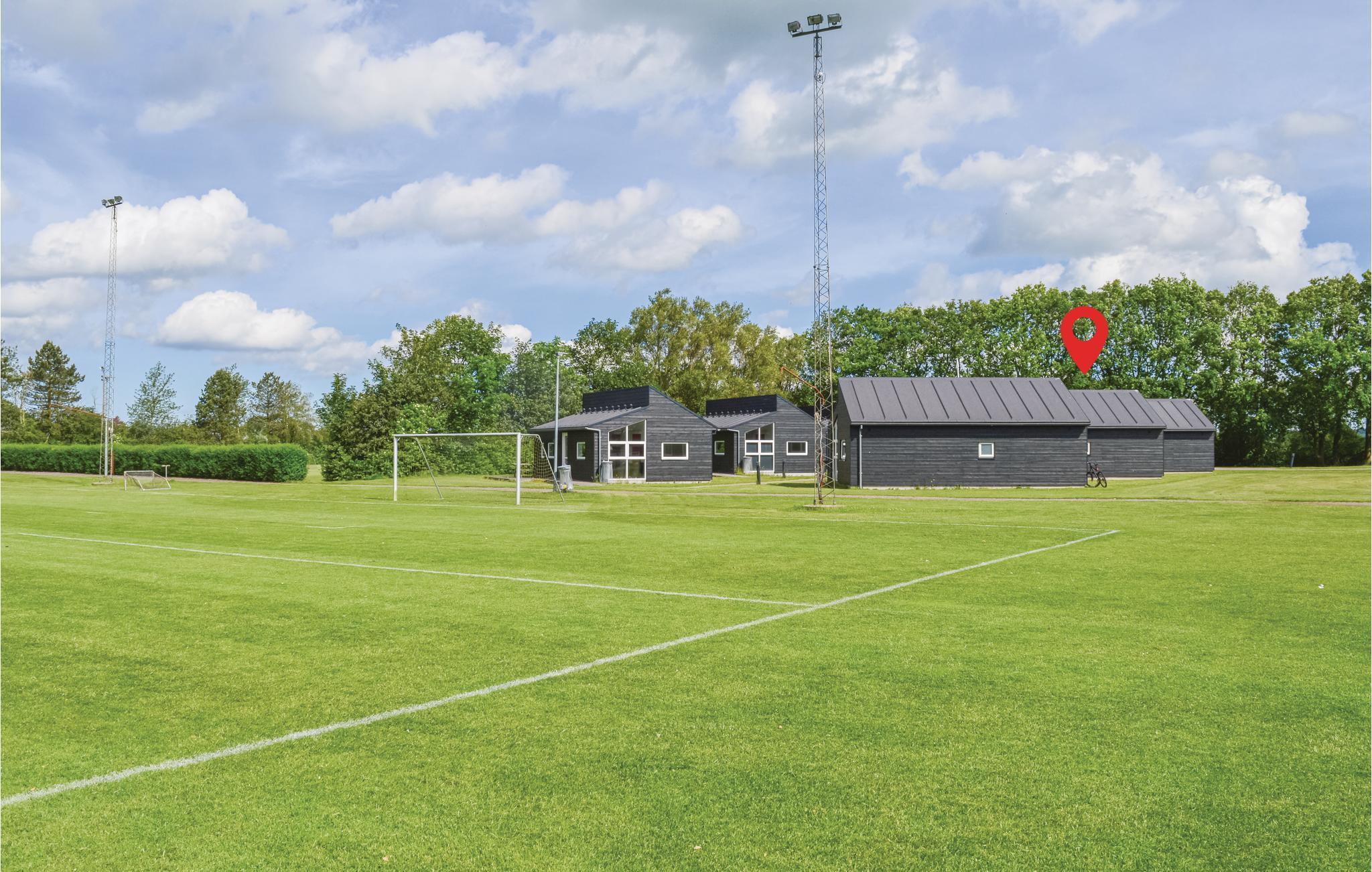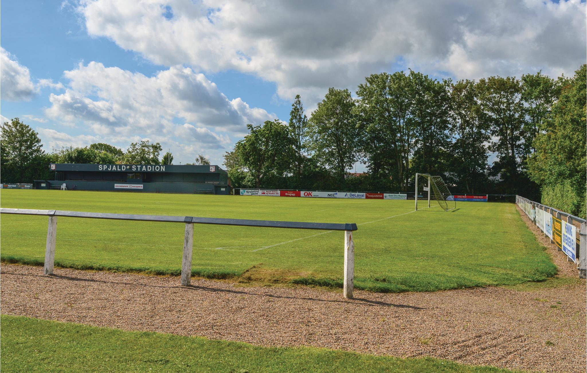 Flot hytte på stort idrætsanlæg i Spjald med adgang til svømmehal, boldbaner og motionscenter for aktive familier.