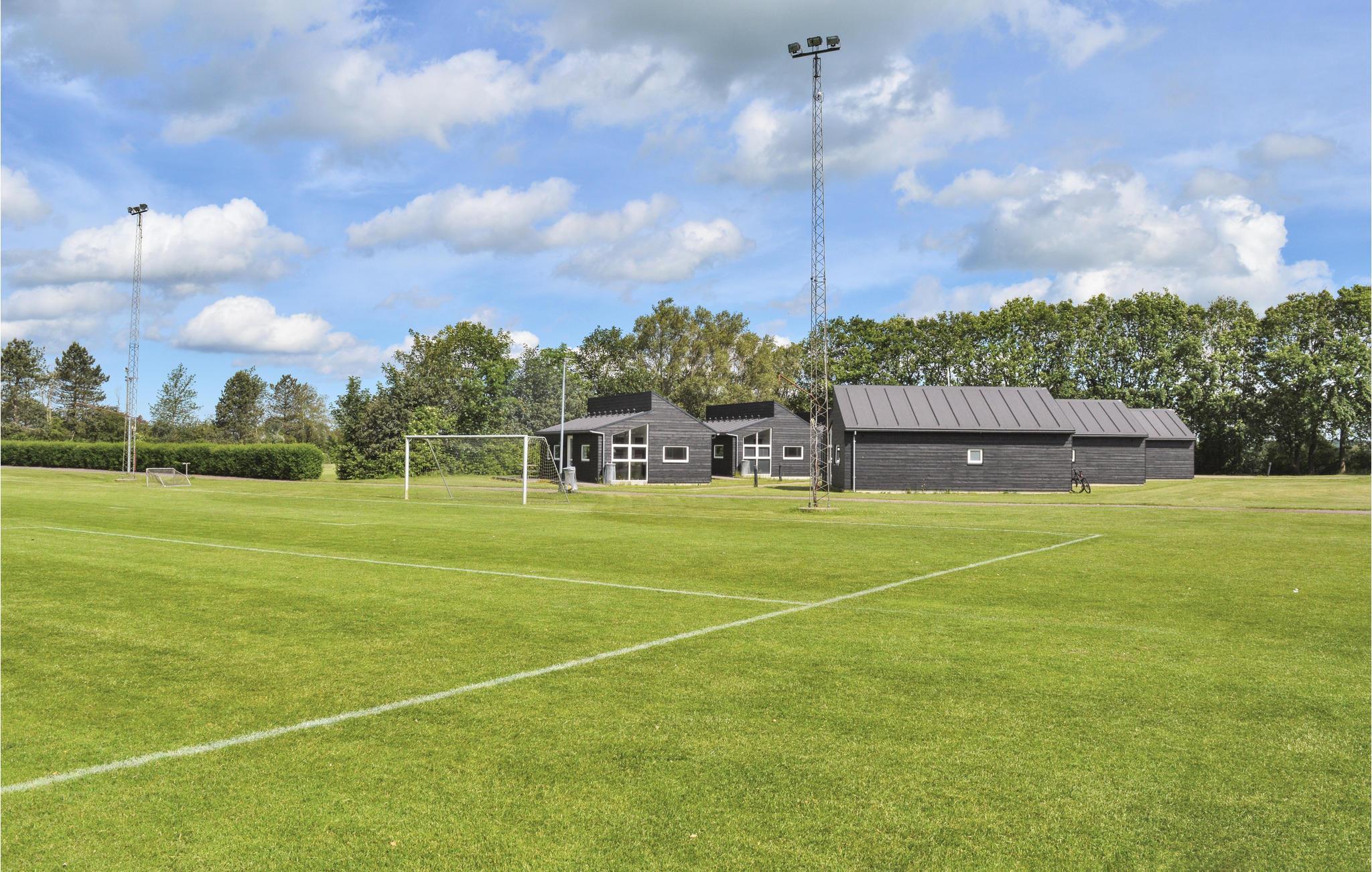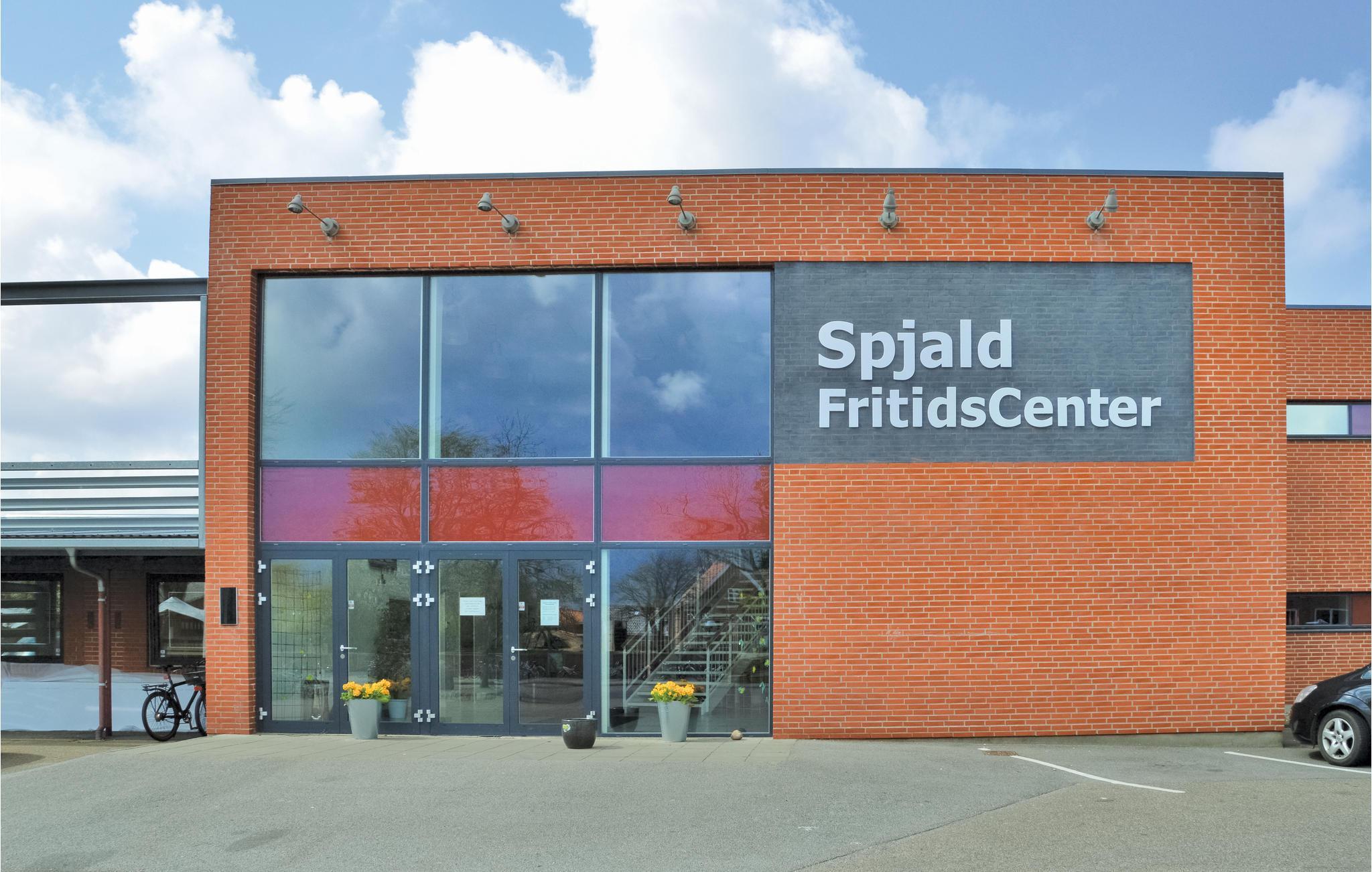 Flotte hytter ved Spjalds idrætsanlæg med tekøkken, terrasse og adgang til svømmehal og sportsfaciliteter.