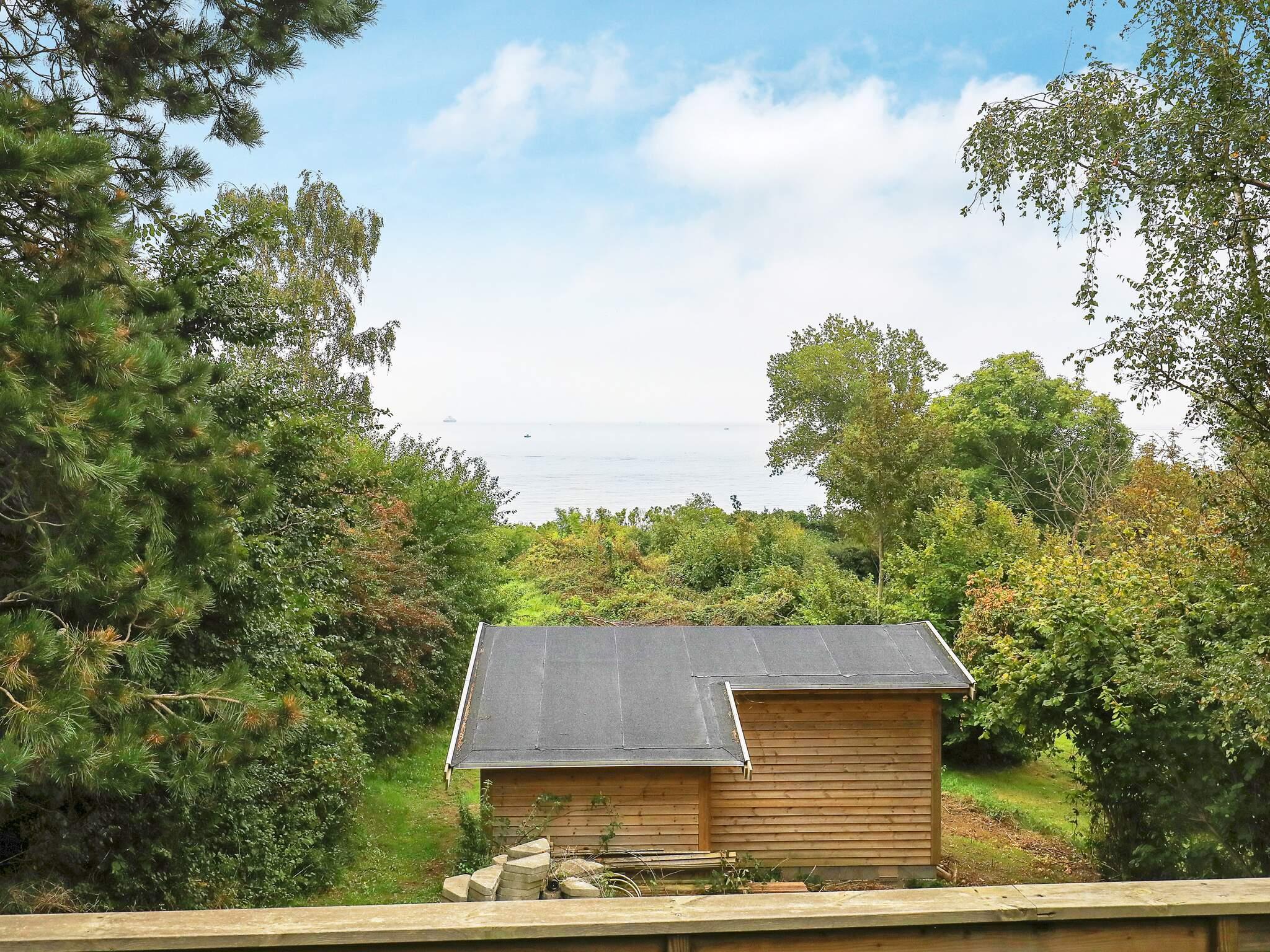 Charmerende ældre sommerhus med panoramaudsigt over vandet nær kysten i Spodsbjerg.