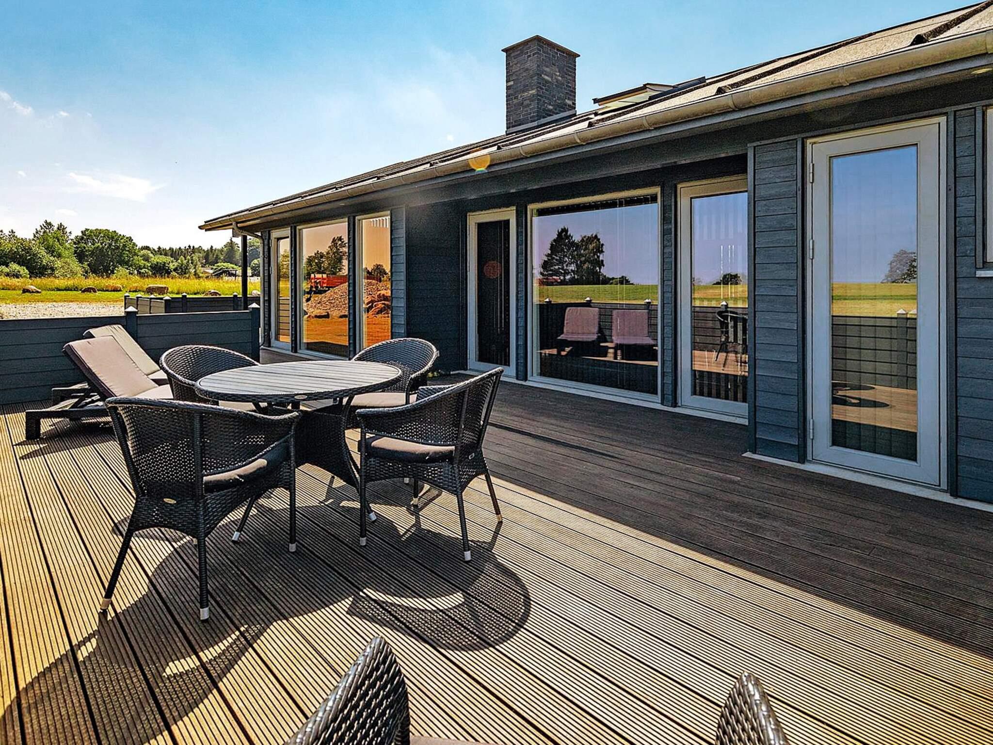 Store vinduespartier i køkken/alrum giver dejlig udsigt over de grønne omgivelser og ud til vandet, hvor man kan se den travle skibstrafik passere forbi. Kun 300 m væk ligger en børnevenlig strand ved Spodsbjerg Drej, perfekt til familiebadeture. Området er også kendt som et populært fiskested.
