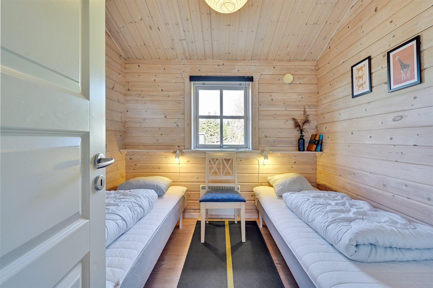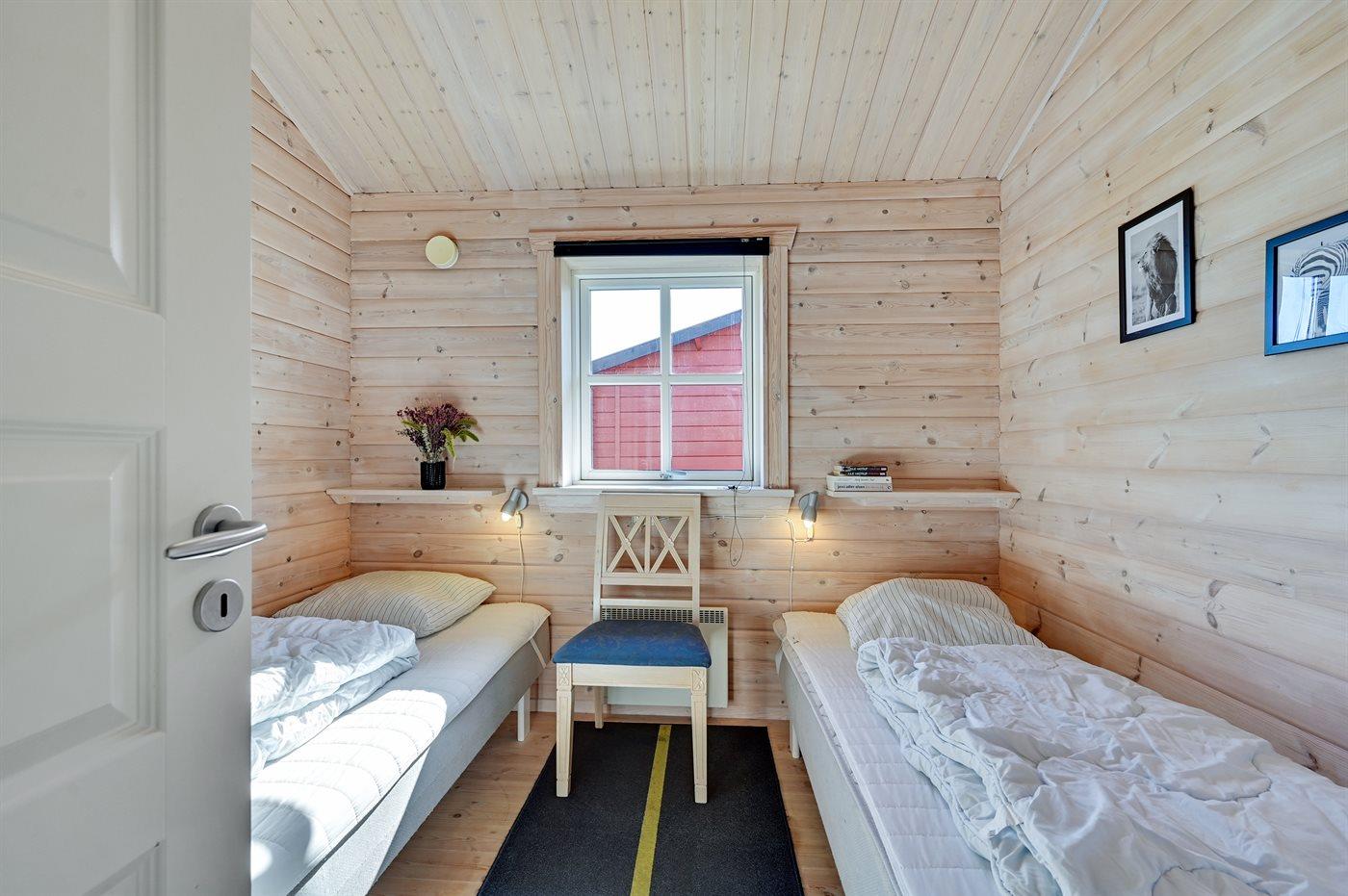 Der er i alt 3 soveværelser. Sovepladserne fordeler sig på: 2 sovepladser i dobbeltseng. 4 sovepladser i enkeltsenge. 2 sovepladser i alkove. Derudover er der 1 stk. barneseng.