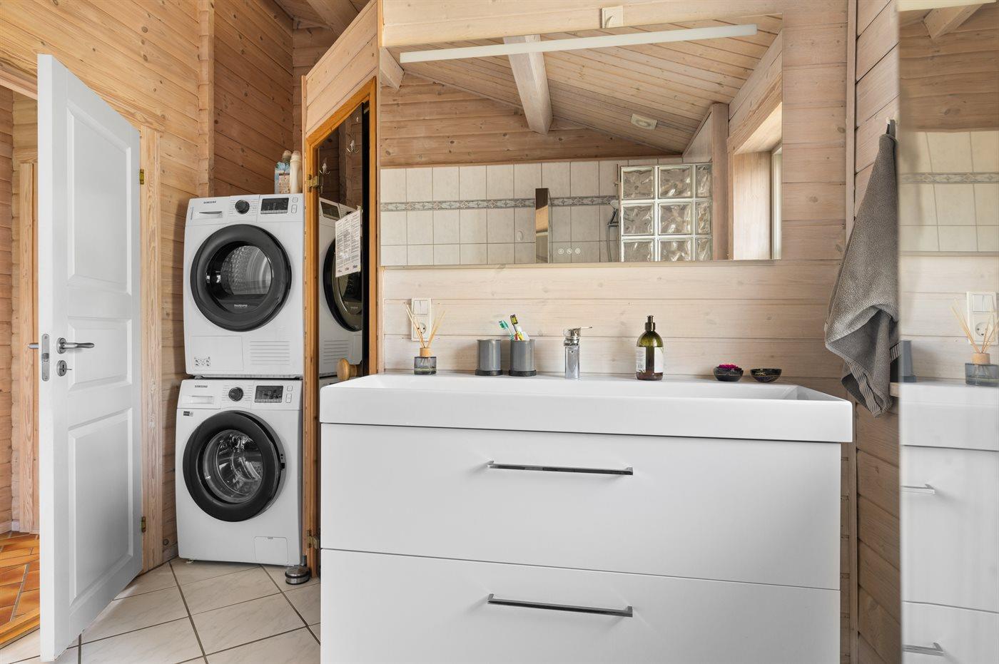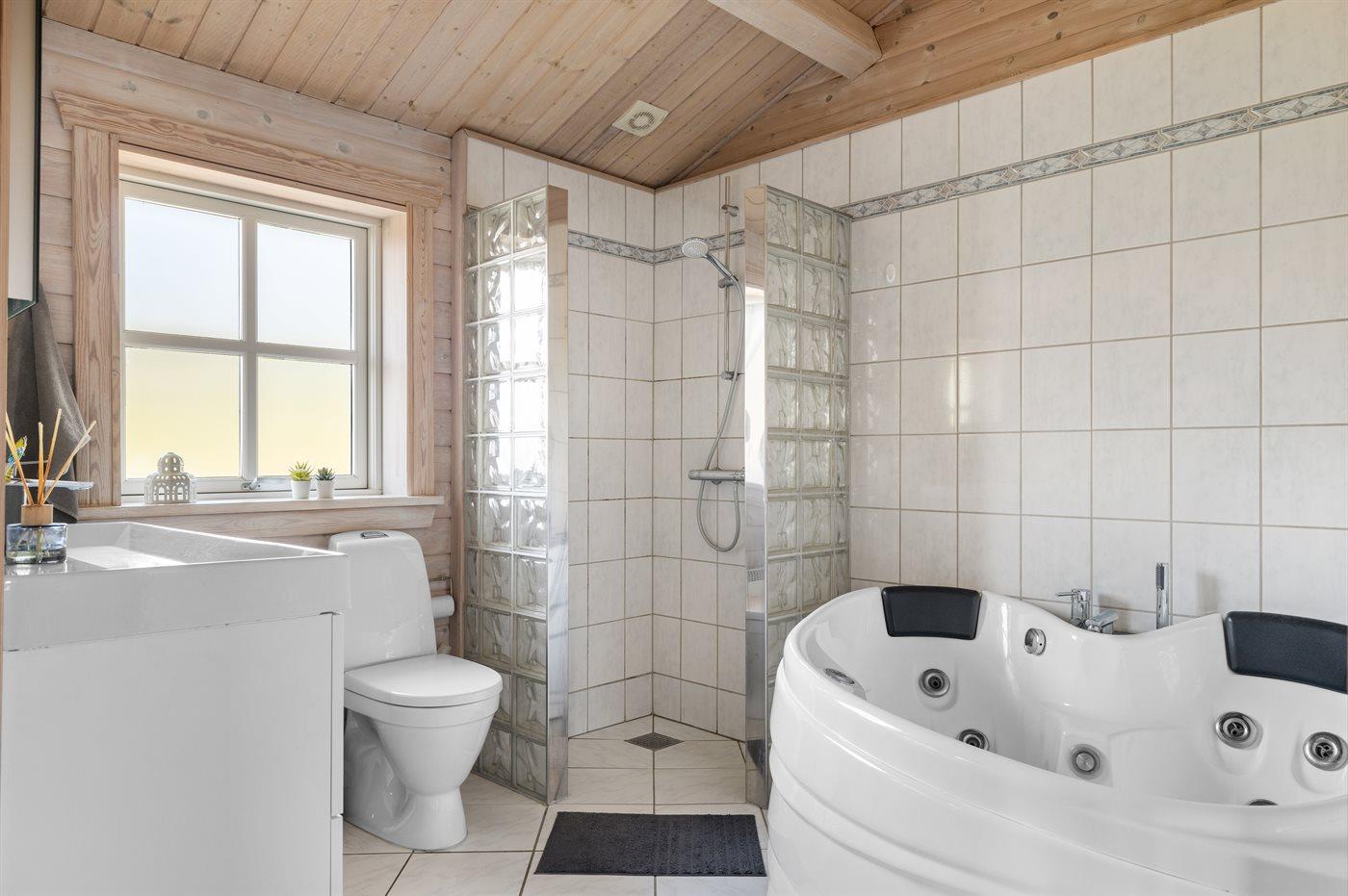 Der er 1 badeværelse med bruseniche og 1 toilet.. Der er gulvvarme på 1 badeværelse. I saunaen er der mulighed for afslapning.
