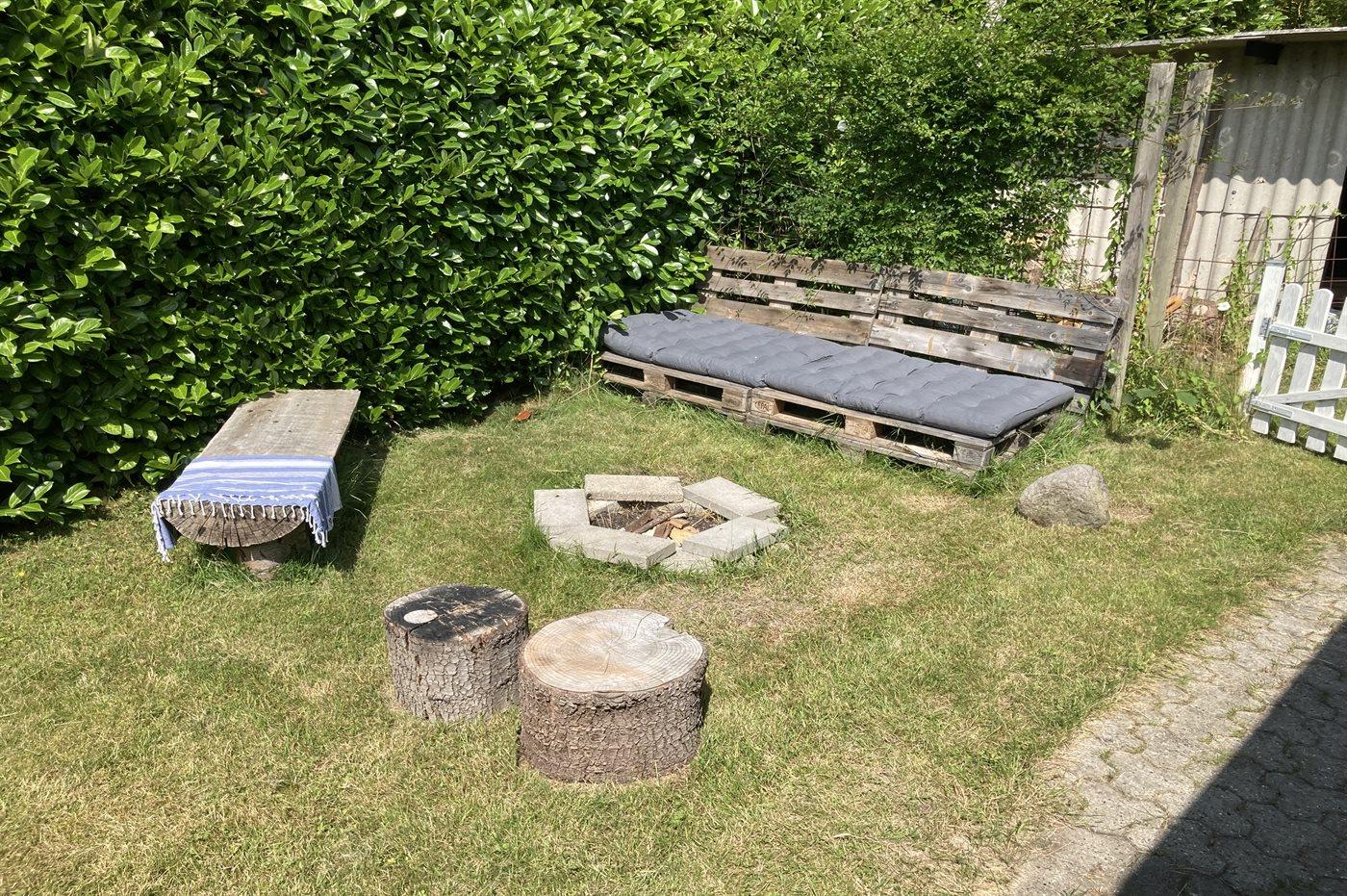 Ferieboligen er beliggende på en 1287 m² stor havegrund. Der er 400 m til havet. Der er en sø i en afstand af 20 m. Nærmeste forretning er beliggende i en afstand af 1500 m. Til ferieboligen hører 90 m² terrasseareal. Desuden er der 45 m² overdækket terrasse. Bålsted. Gasgrill står til rådighed. Parkering ved ferieboligen.