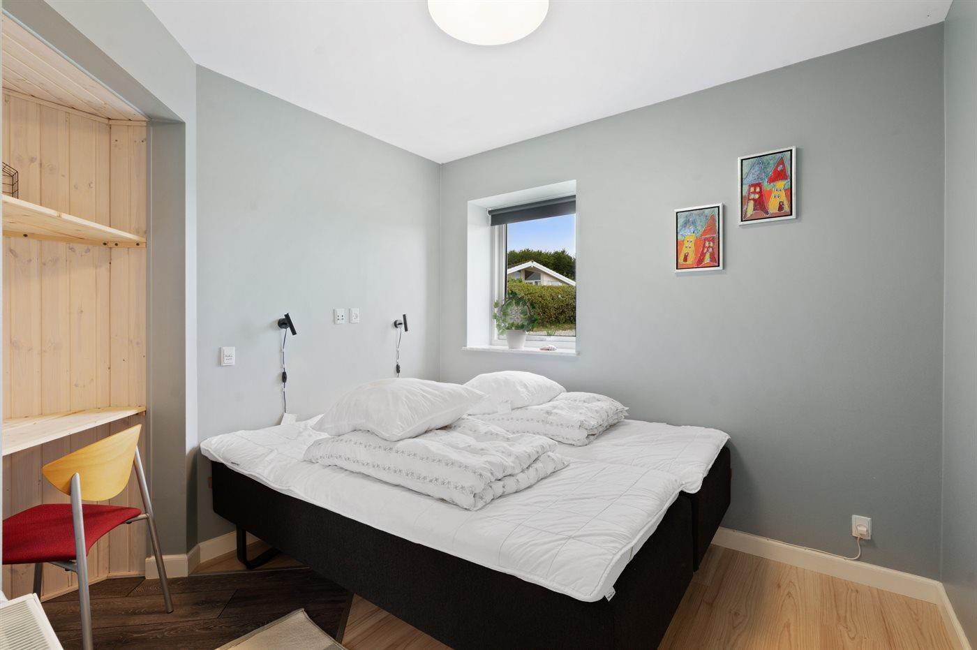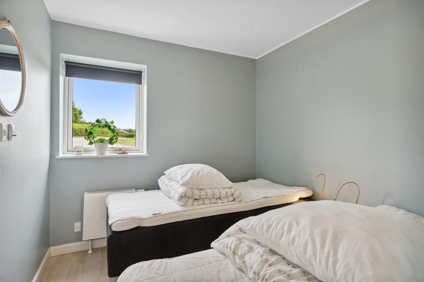 Der er i alt 4 soveværelser. Sovepladserne fordeler sig på: 2 sovepladser i dobbeltseng. 6 sovepladser i enkeltsenge. 2 sovepladser i sovesofa (dobbelt).- 2 af disse sovepladser befinder sig i stuen. Derudover er der 1 stk. barneseng.