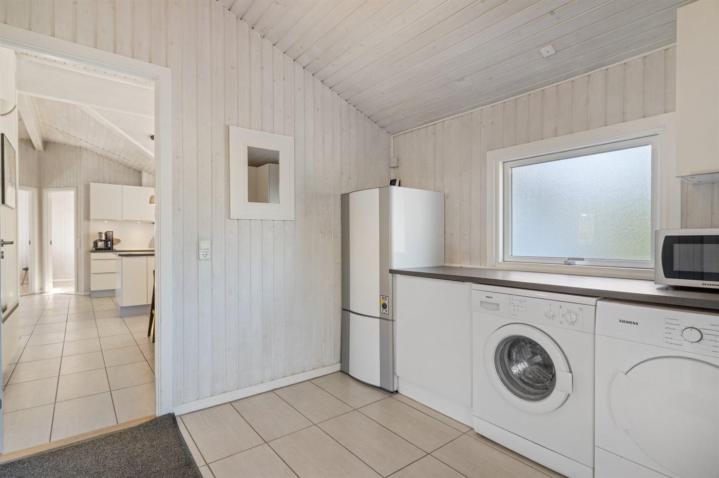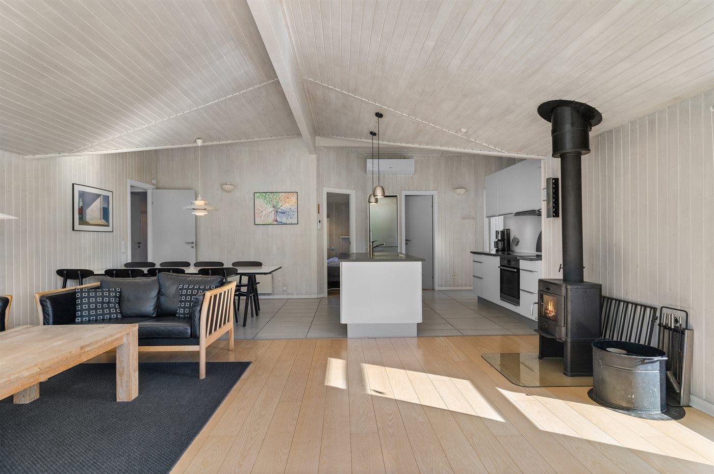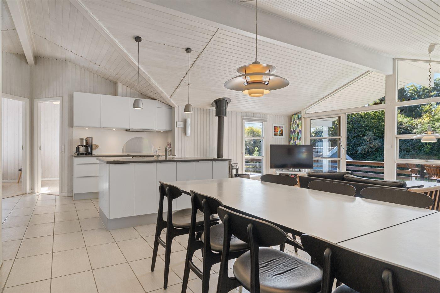 Køkkenet er udstyret med 1 køleskab. Der er 4 induktionskogeplader, varmluftovn, mikrobølgeovn samt opvaskemaskine.