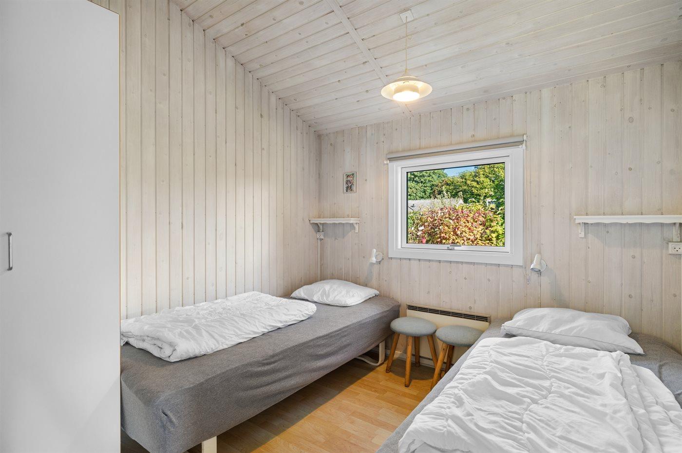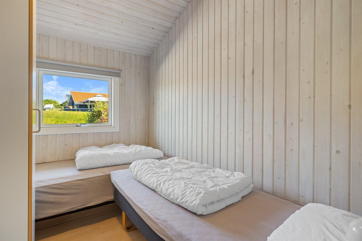 Der er i alt 4 soveværelser. Sovepladserne fordeler sig på: 8 sovepladser i enkeltsenge. Derudover er der 1 stk. barneseng.