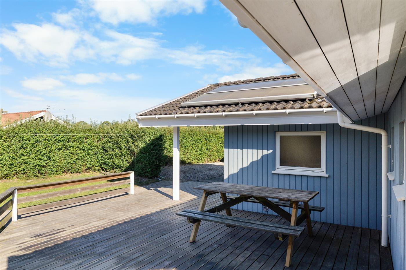 Huset er moderne og lyst indrettet og har et skønt stort sydvendt terrasseareal, som er delvist overdækket.