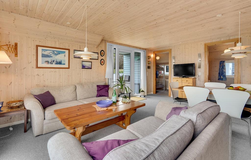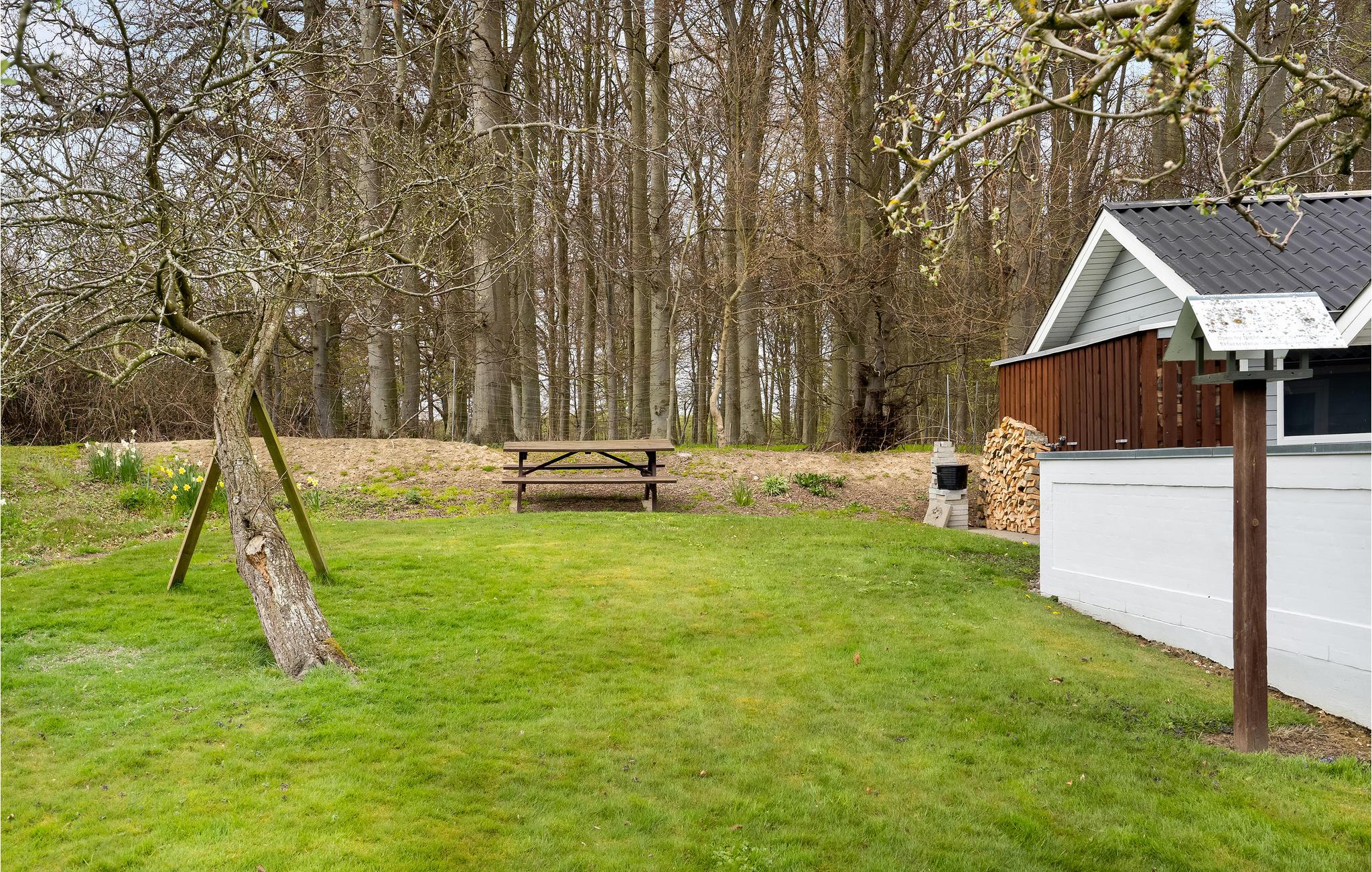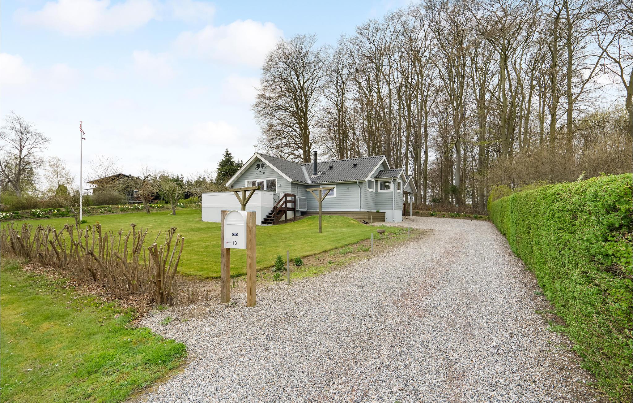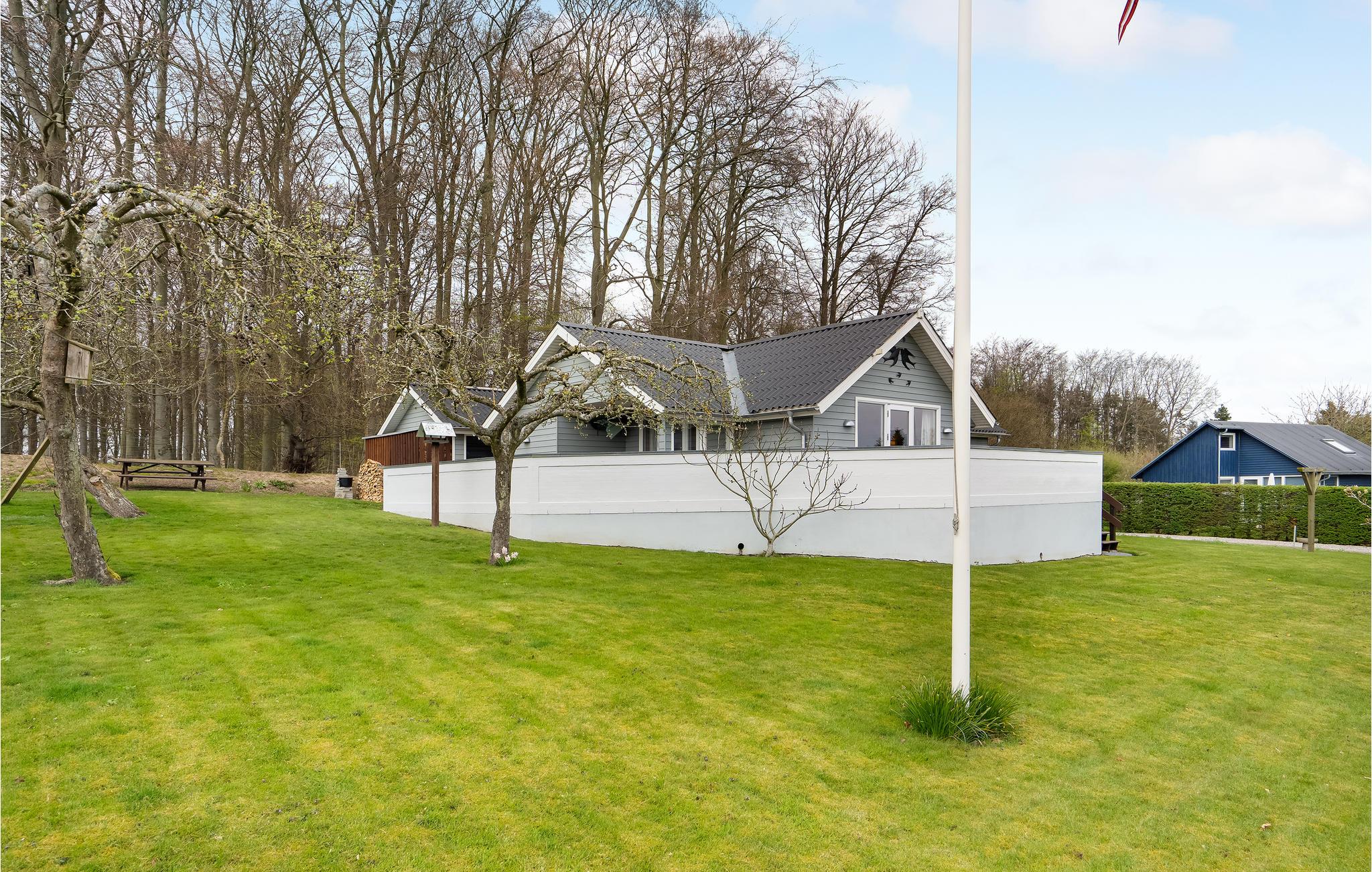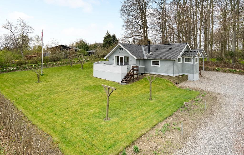 Hyggeligt træhus nær skov og strand på Langeland med stor terrasse og fredelig beliggenhed.