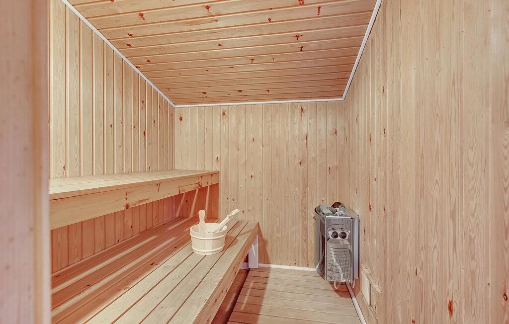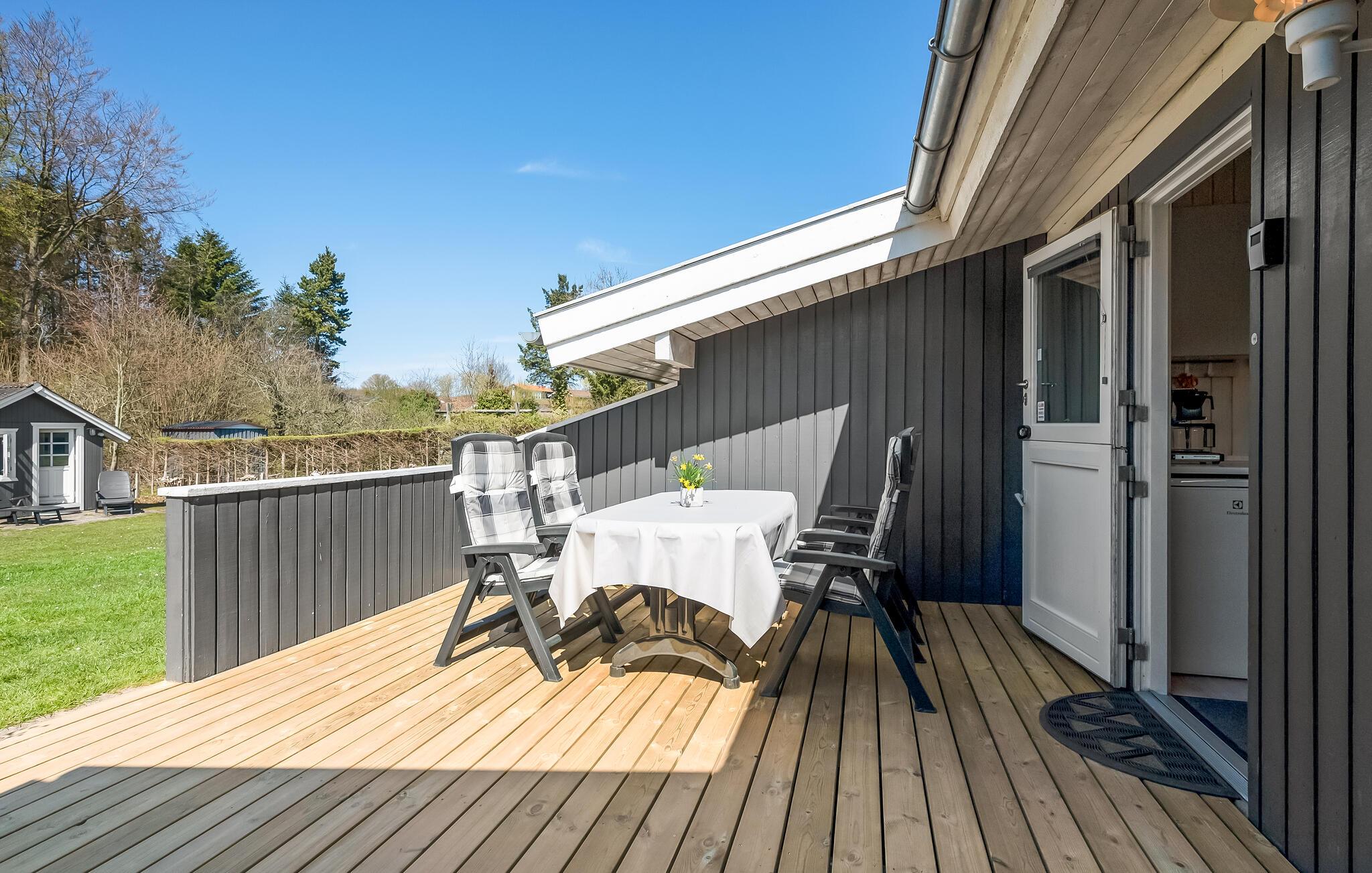 I feriehusområdet Spodsbjerg ligger dette dejlige træferiehus for enden af en lukket vej, så her er meget lidt trafik. Det er smagfuldt møbleret og komfortabelt udstyret med mange moderne bekvemmeligheder til en afslappet ferie. Blandt andet er der en sauna til 6 personer, hvor det er dejligt at slappe af i varmen. Fra huset er der kun 300 m til badestranden og det friske hav og i Spodsbjerg er der desuden meget gode fiskemuligheder. Spodsbjerg lystfiskersø ligger i øvrigt i umiddelbar nærhed, så husk fiskestangen og fiskekogebogen.