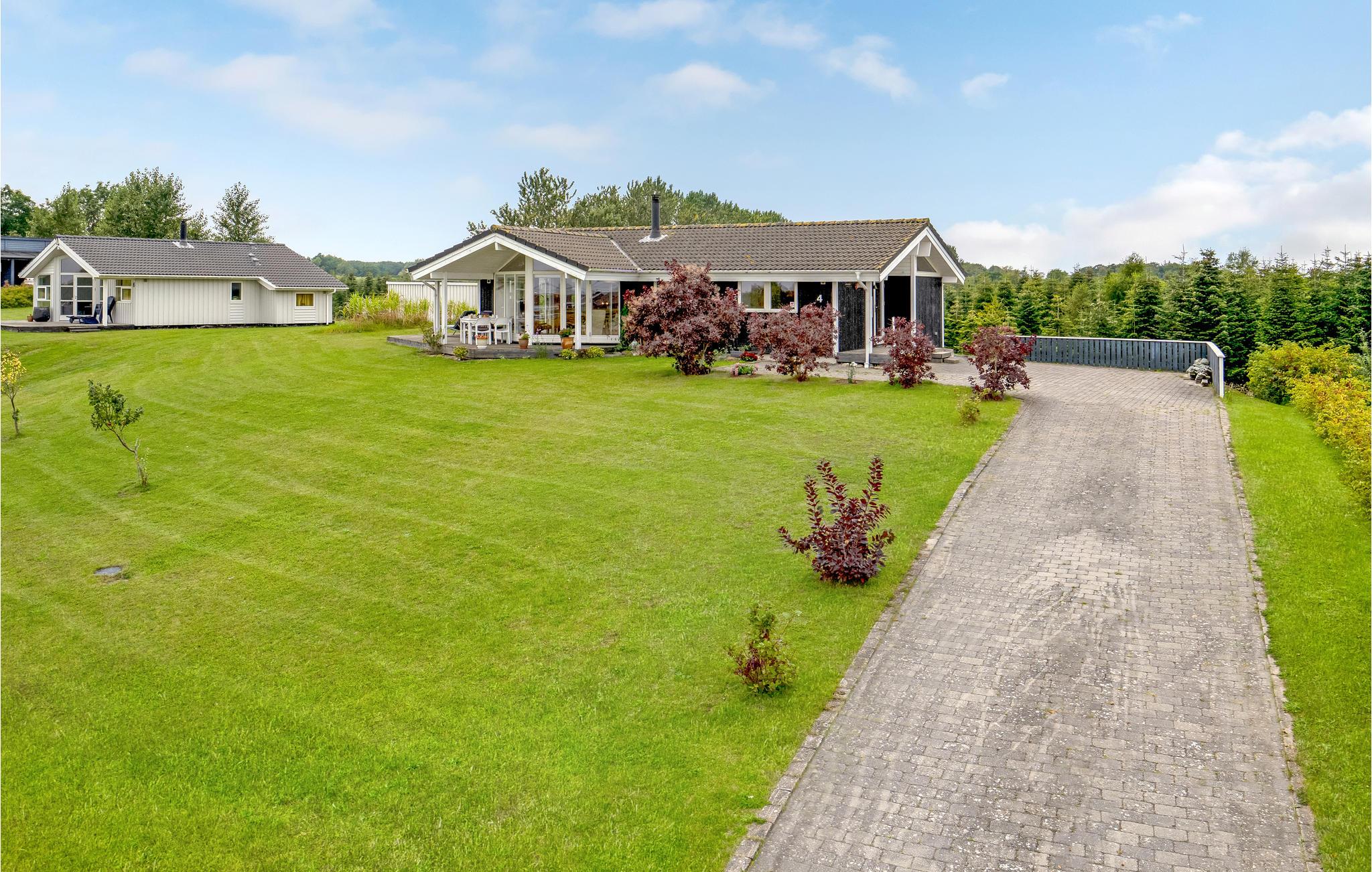 Træhus med havkig og fiskemuligheder i Spodsbjerg