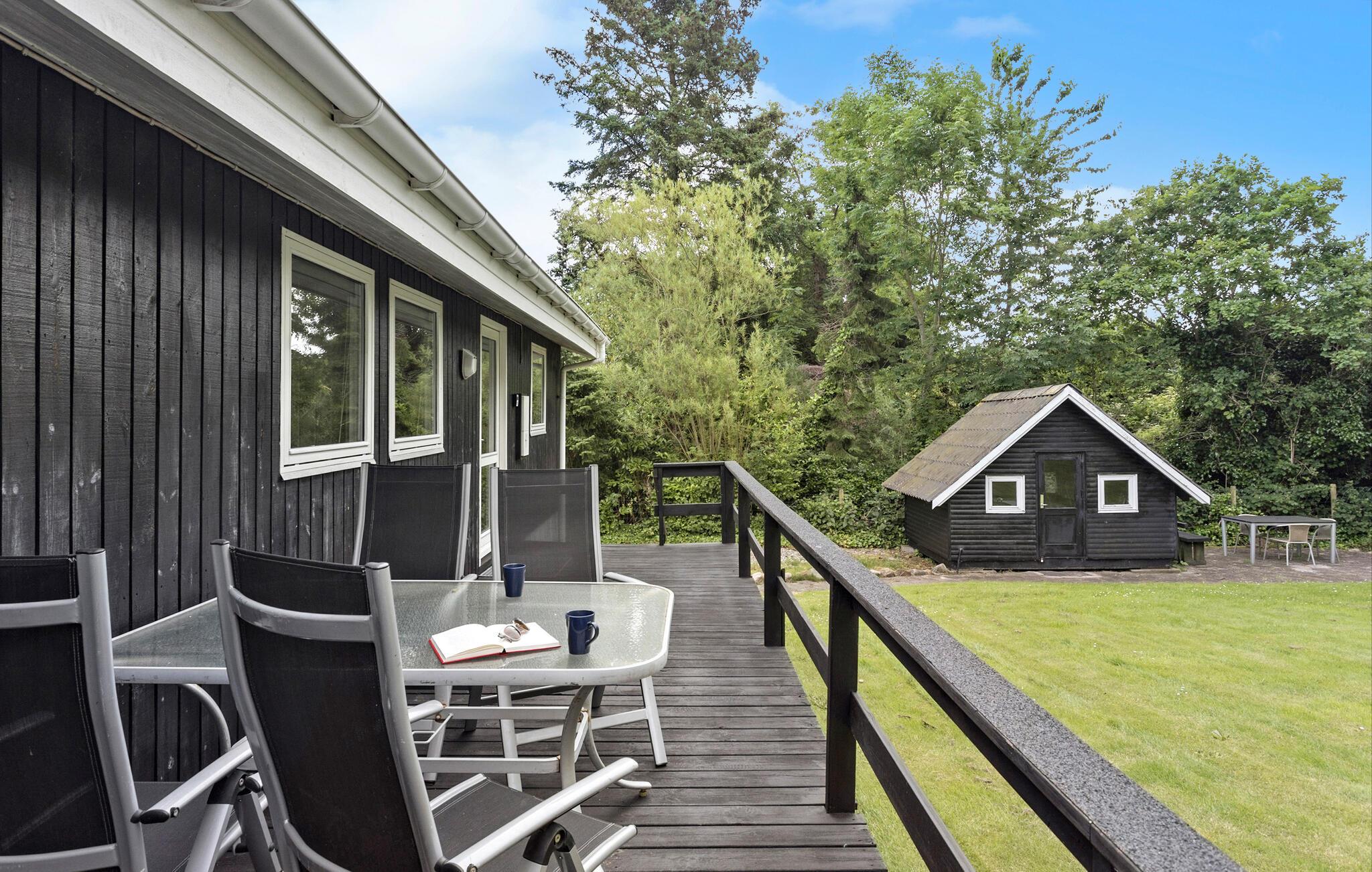 Charmerende træferiehus i Spodsbjerg med sauna, spabad og stor terrasse tæt på havet.