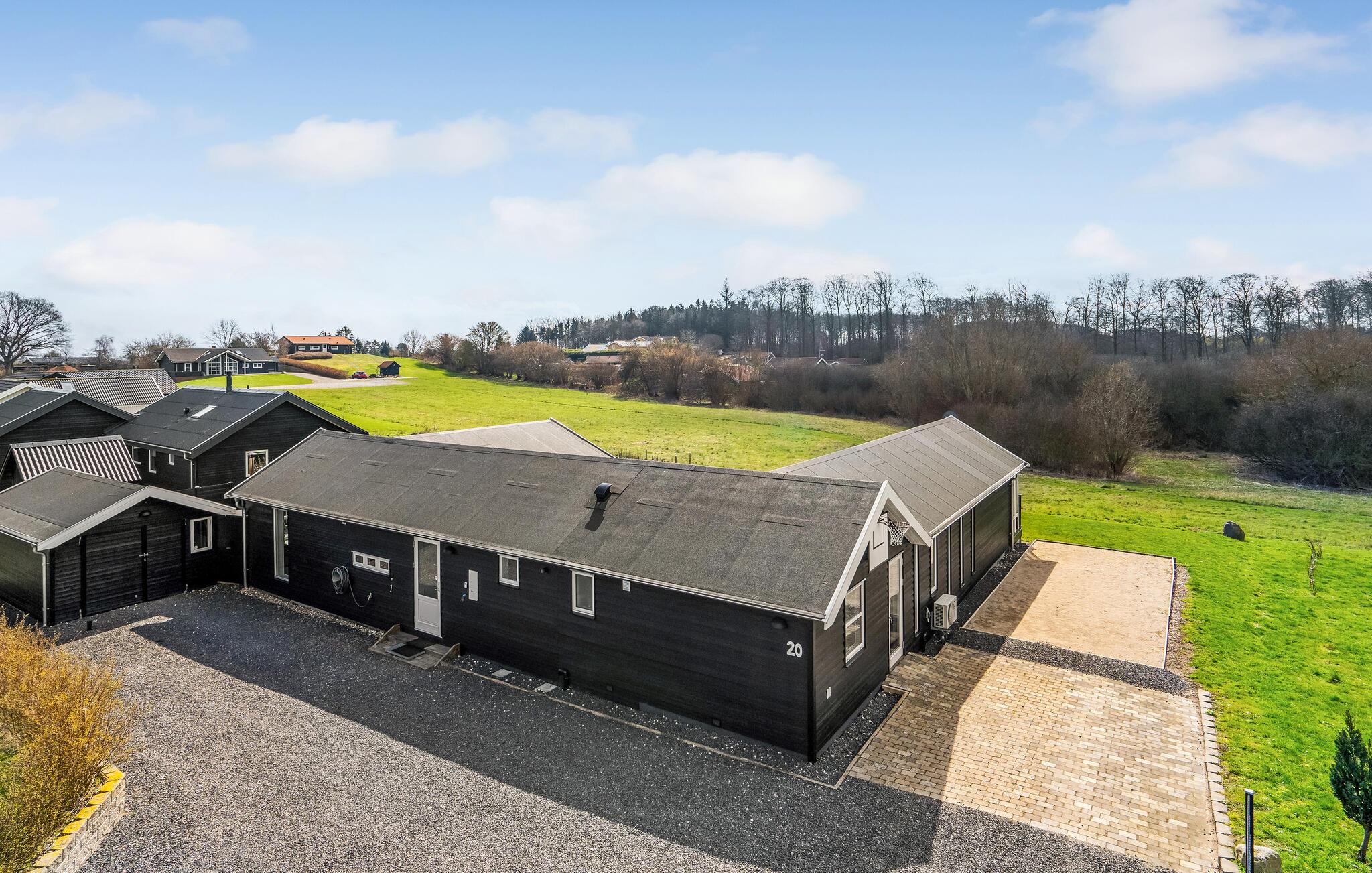 Dejligt træhus i Spodsbjerg med spa, sauna og petanquebane for hele familien.