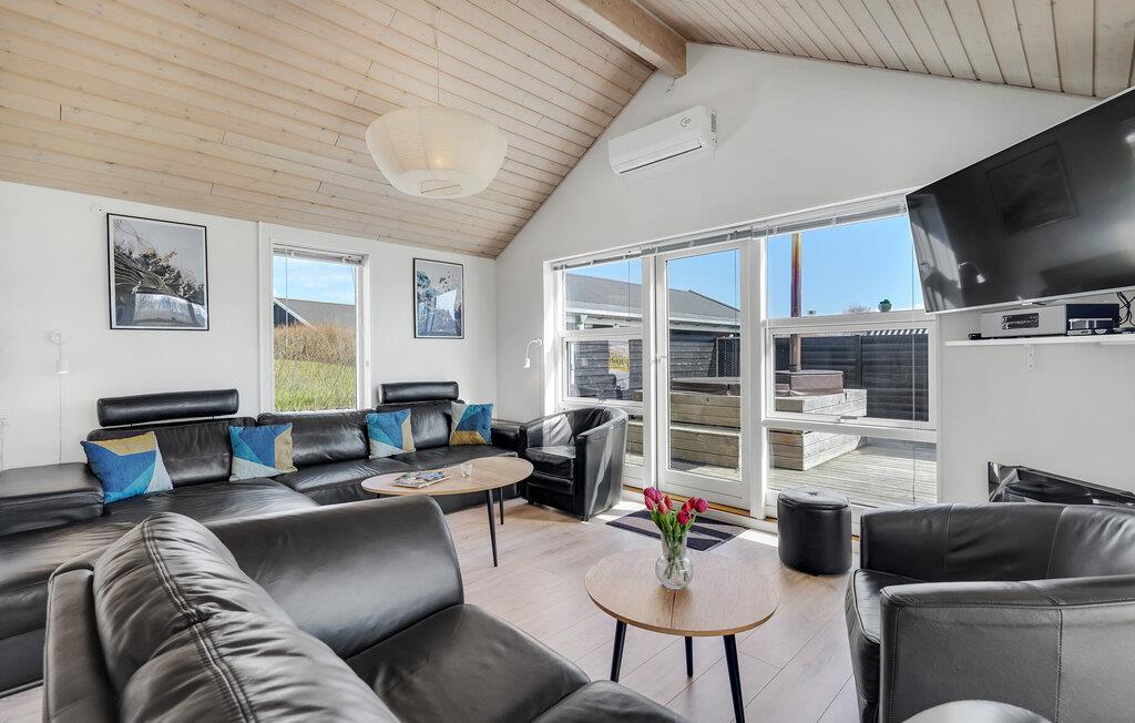 Dejligt, rummeligt træferiehus beliggende i feriehusområdet Spodsbjerg. Huset har ingen faste tæpper og er funktionelt indrettet. I huset og på grunden/terrassen findes der rigtig mange faciliteter bl.a. med en petanquebane.