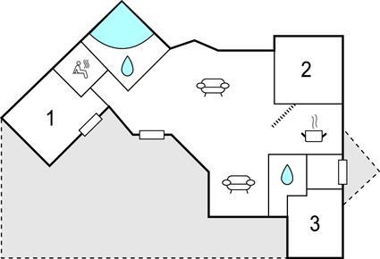 Badeværelse 3m2 (nr. 2) - WC. Varmt og koldt vand. Bruser