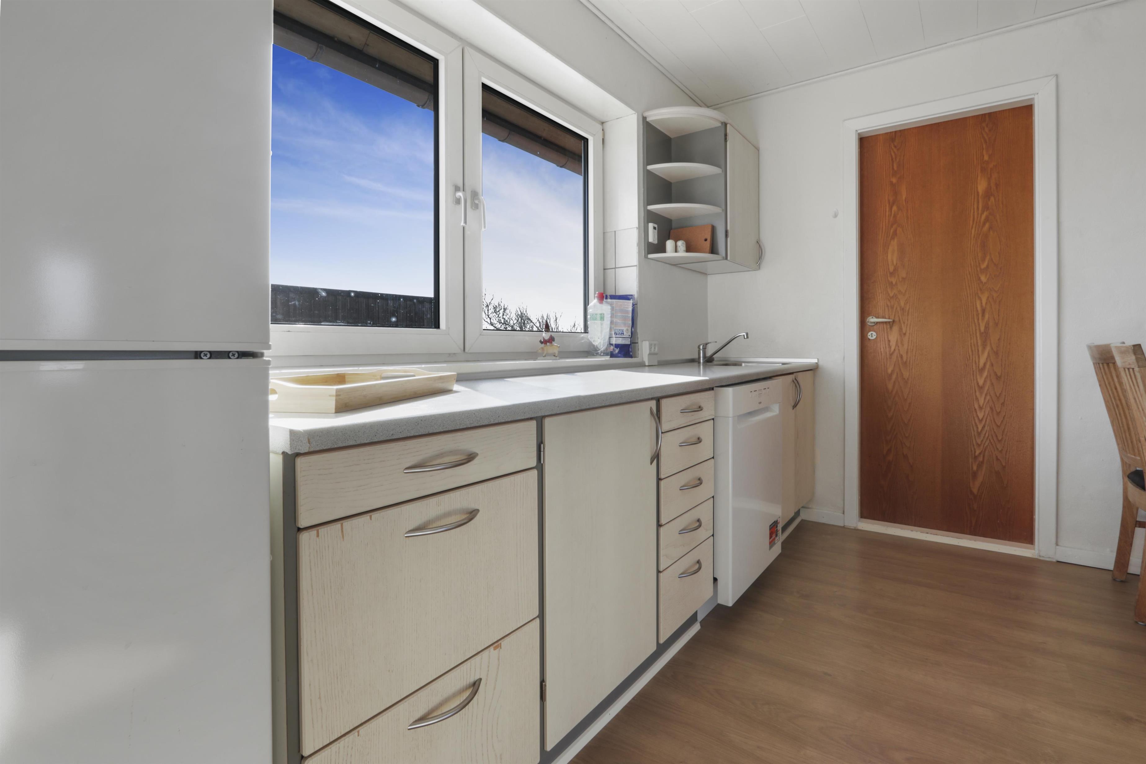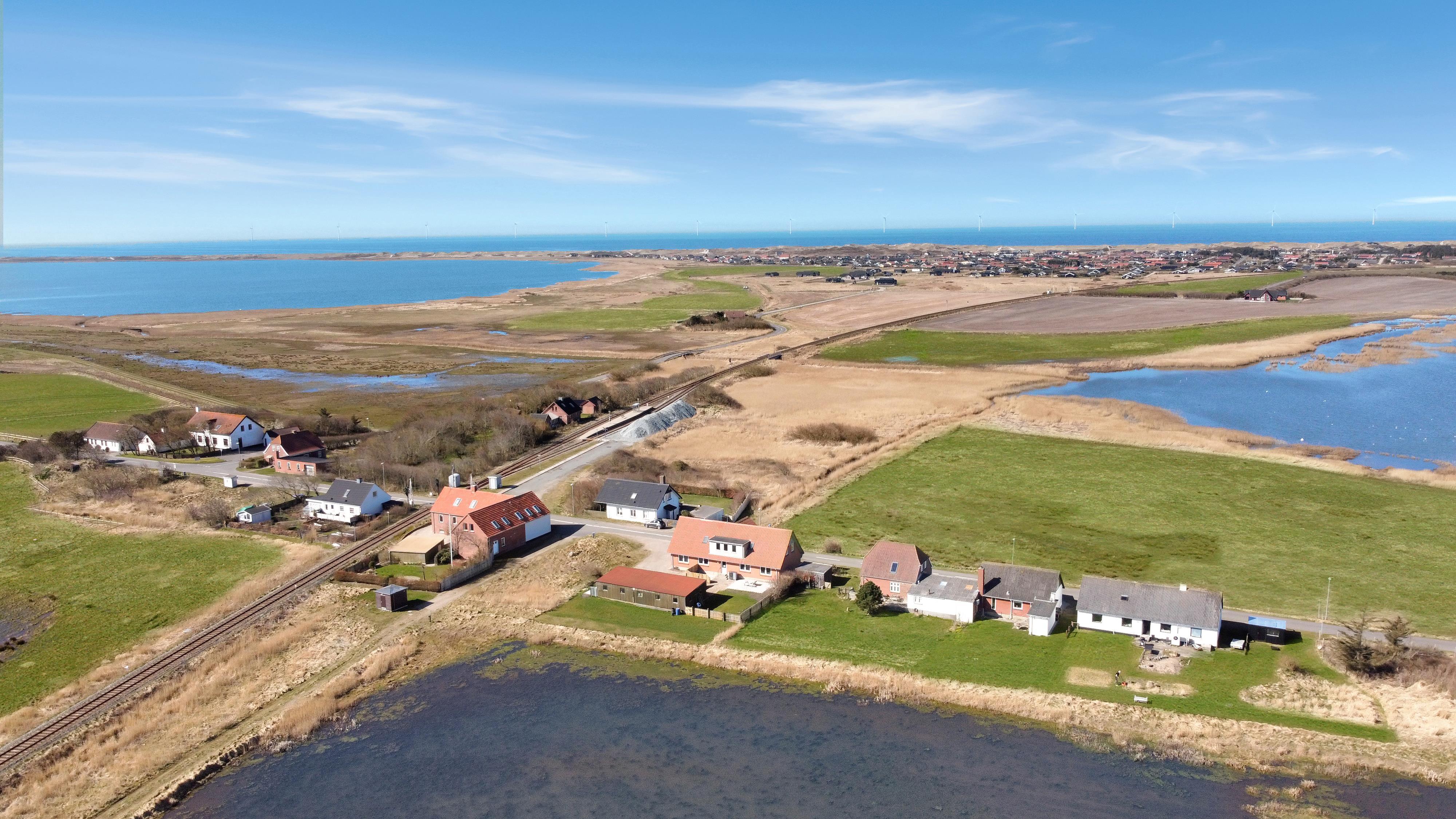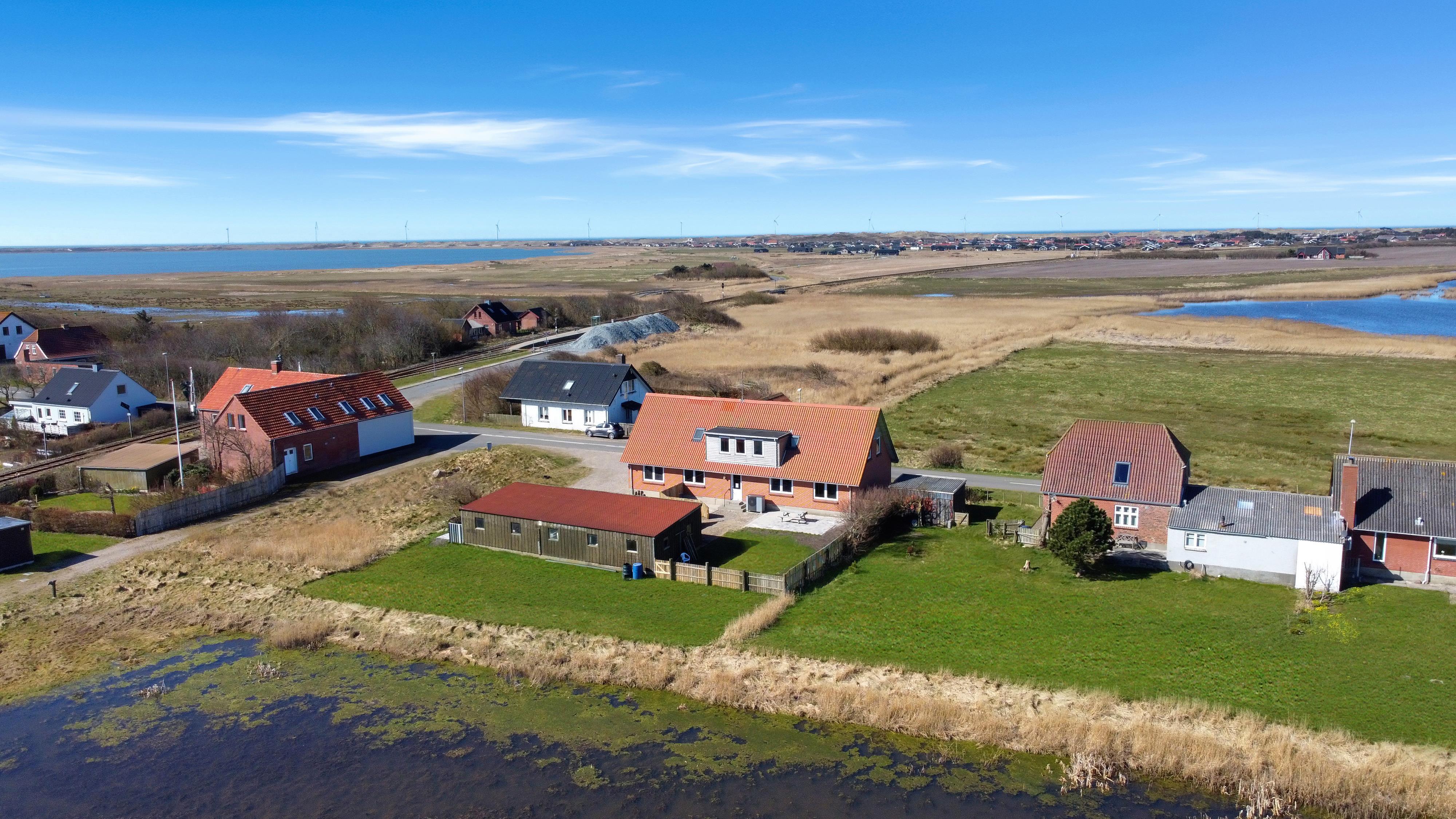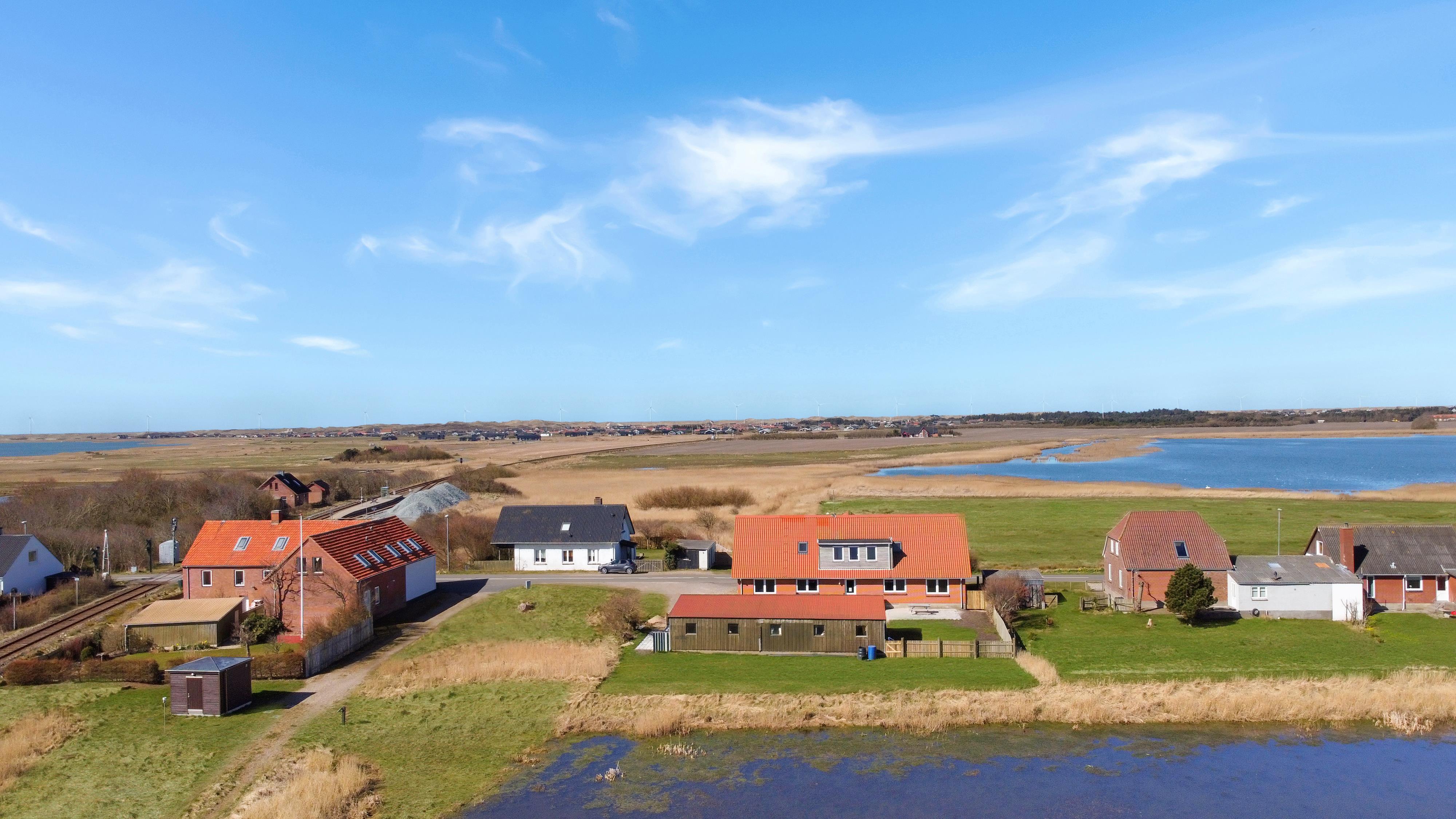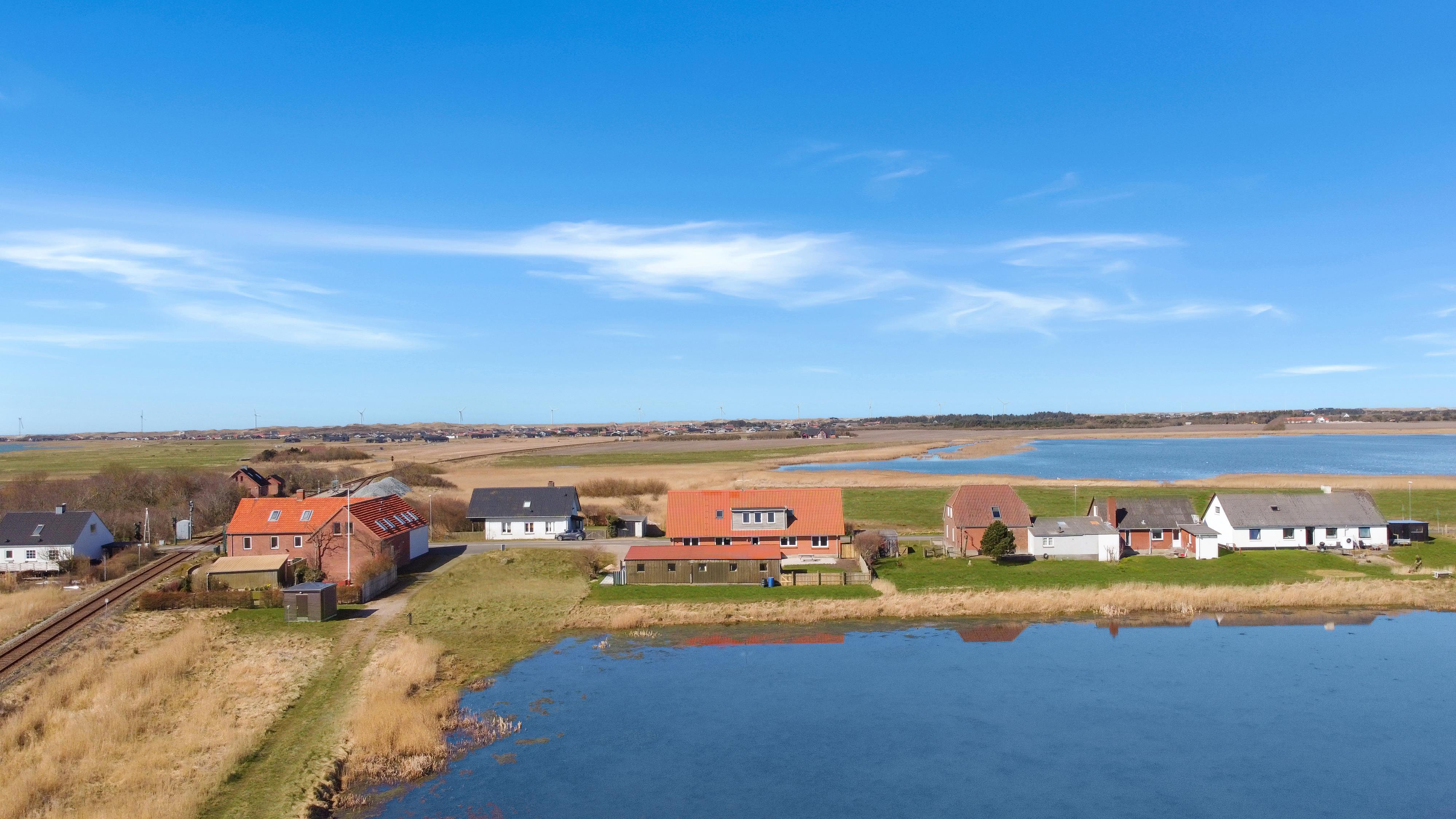 Fra den fælles fordeler gang er der udgang til en dejlig fælles terrasseanlæg med havemøbler og grill ligesom der er adgang til en mindre sø. Perfekt til en lille gåtur men som også gør at der er en flot udsigt fra lejlighedens køkken Det er nemt at komme en tur til Vesterhavet fra lejligheden. Under ferien kan et besøg i fiskerbyen Thyborøn eller handelsbyen Lemvig være et besøg værd, her er der et godt udvalg af indkøbsmuligheder, restauranter og seværdigheder.