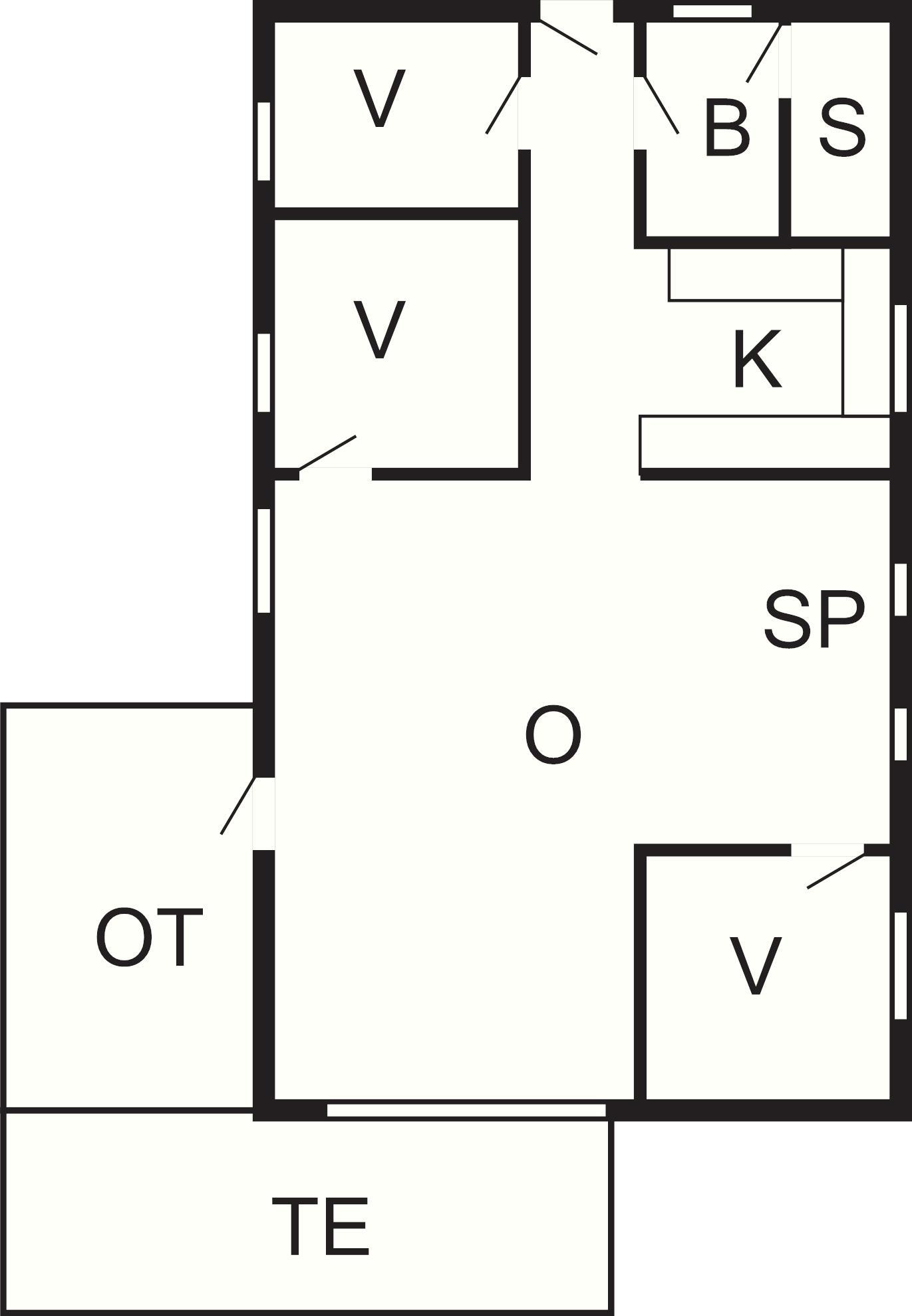 3 Soveværelser: (1DS)+(1DS)+(2S), barneseng