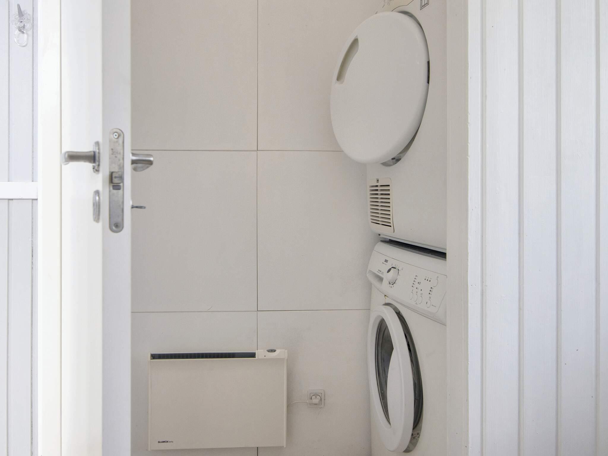 Køkken: Brændeovn, tv, køle-frys, mikroovn, kaffemaskine, opvaskemask., vaskemask., tørretumbler