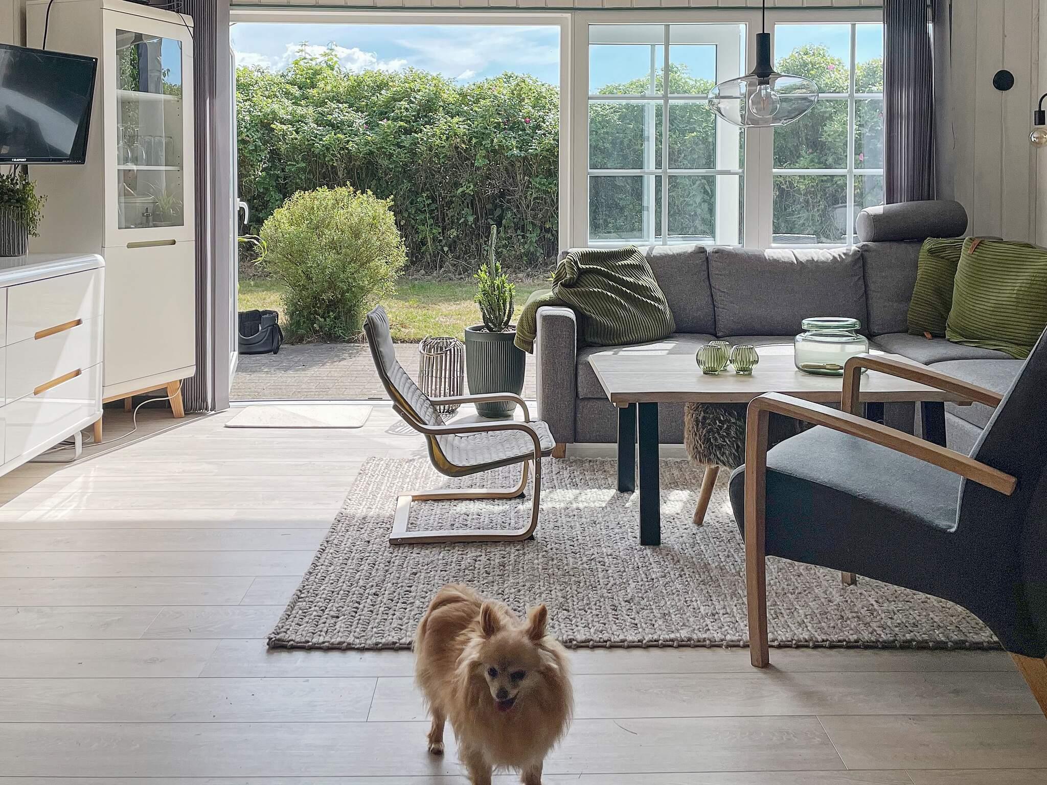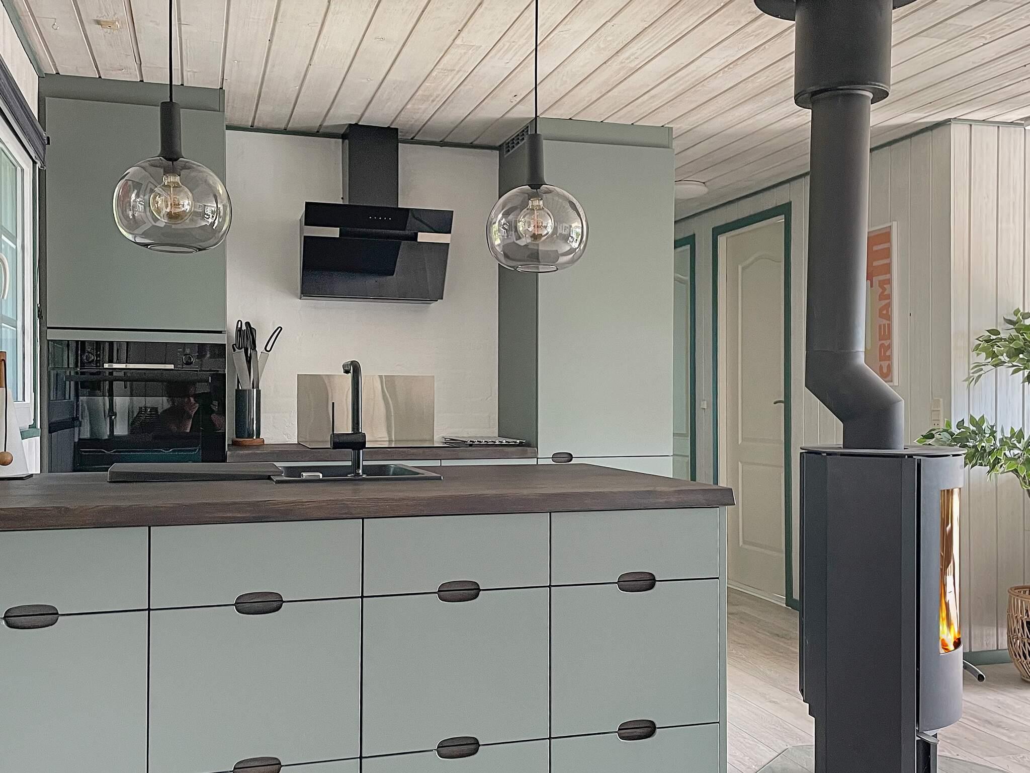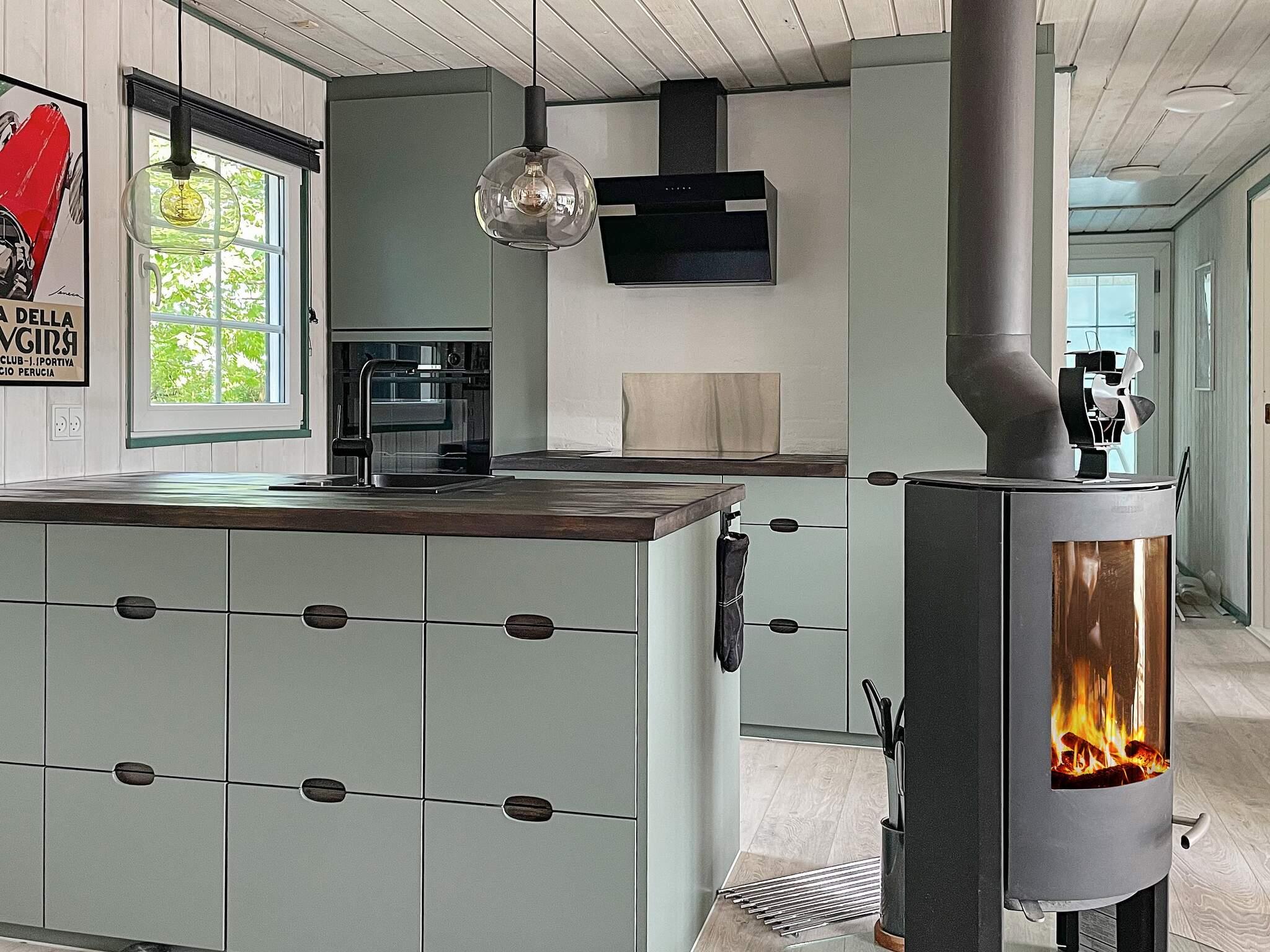 Huset har et veludstyret elementkøkken og stuen, der er hyggeligt indrettet med en stor hjørnesofa, er kombineret med et spisehjørne.