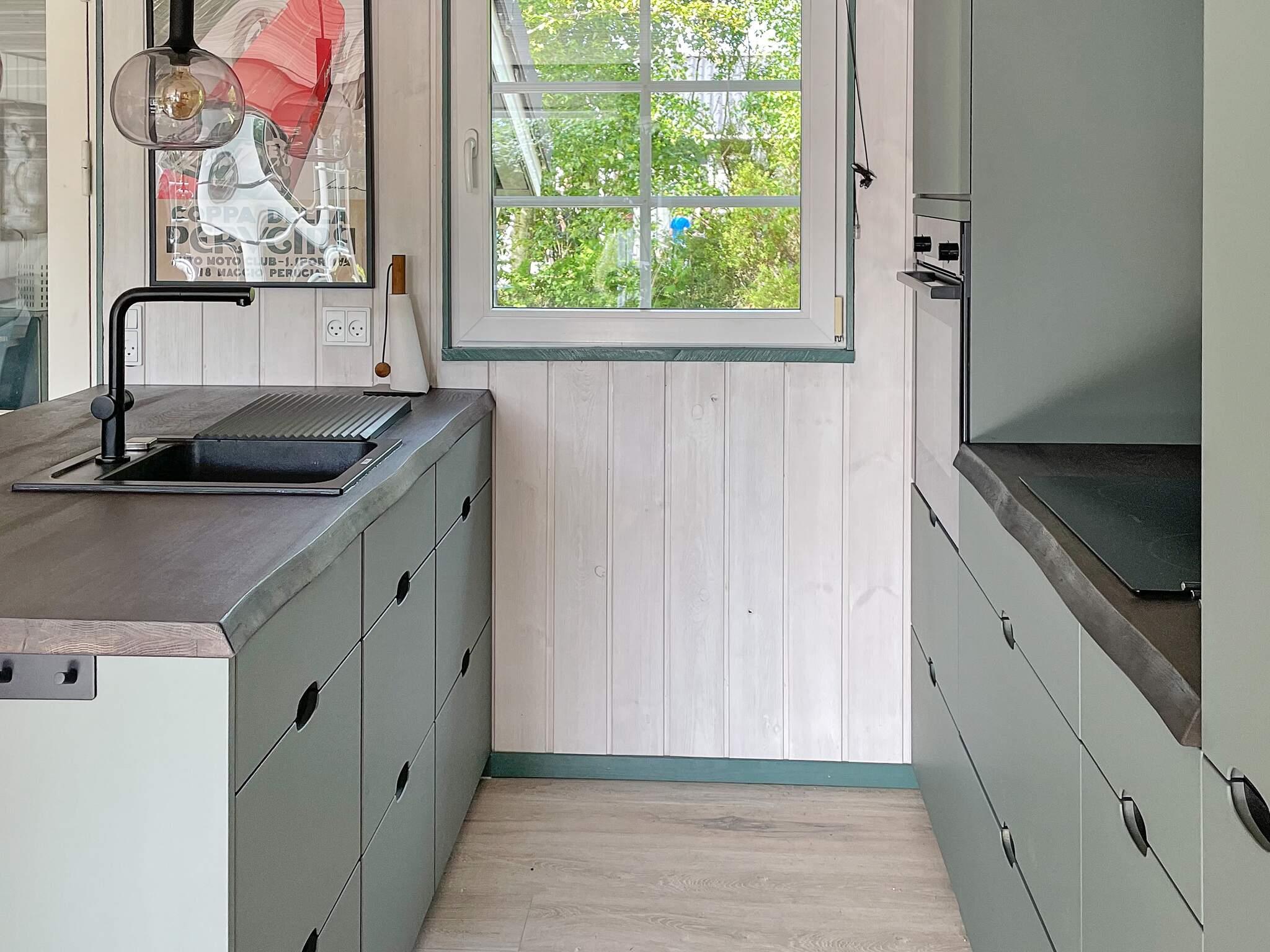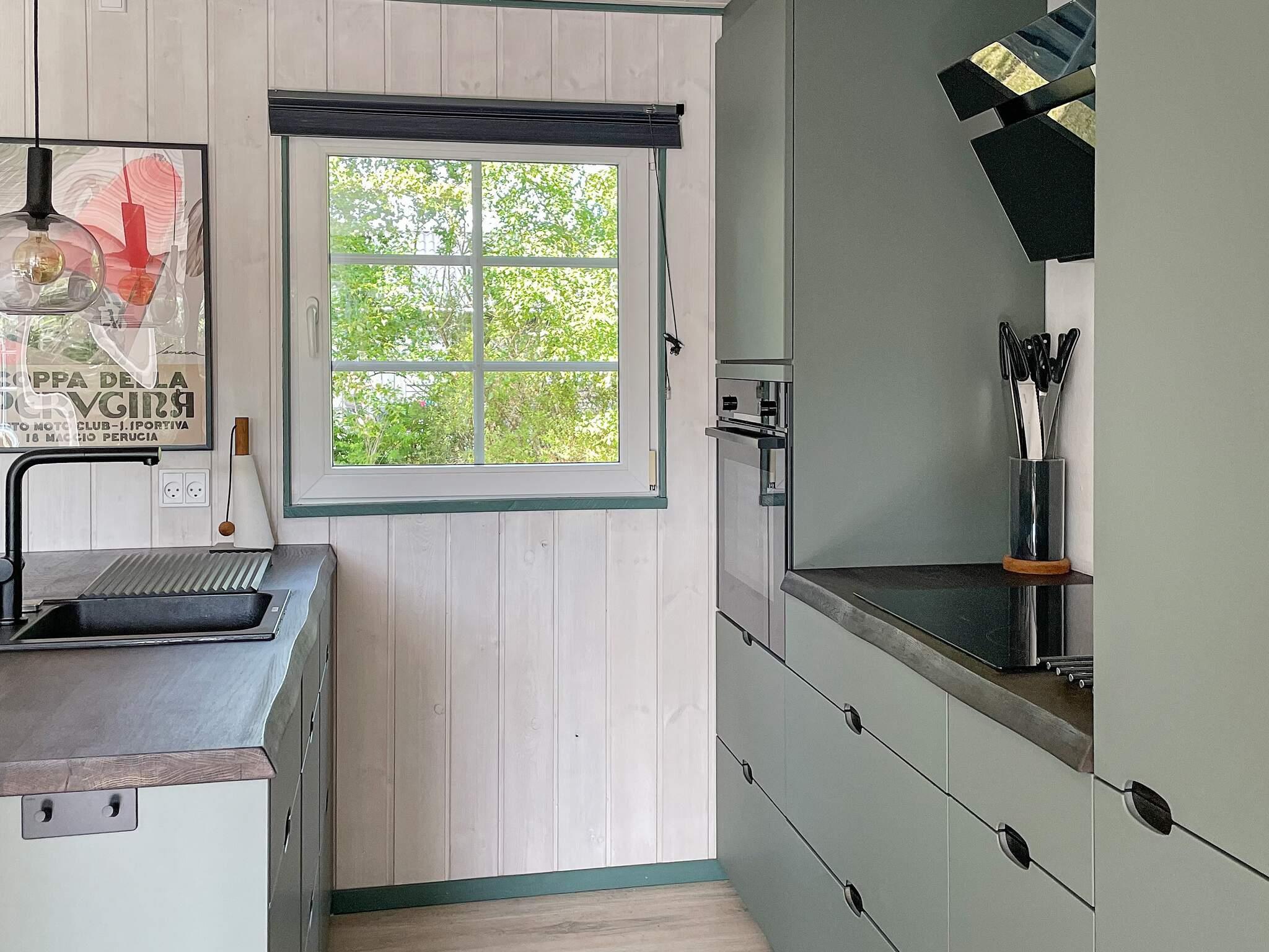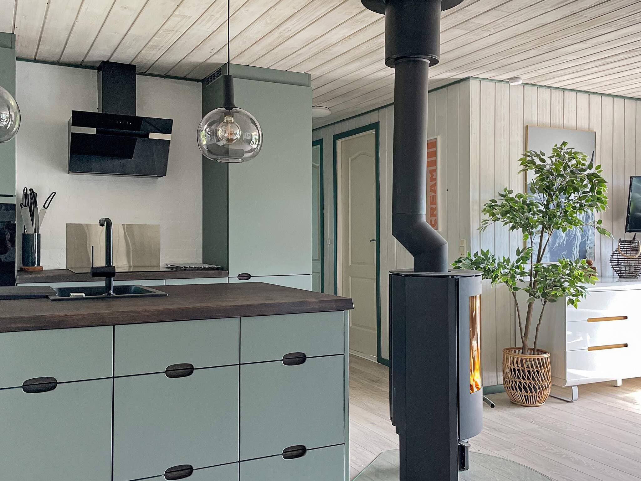 Huset har et veludstyret elementkøkken og stuen, der er hyggeligt indrettet med en stor hjørnesofa, er kombineret med et spisehjørne.