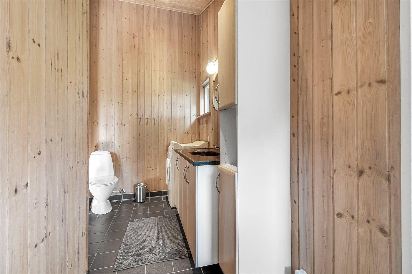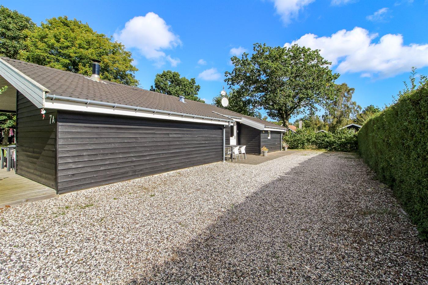 Ferieboligen er beliggende på en 1200 m² stor naturgrund. Der er 500 m til havet. Nærmeste forretning er beliggende i en afstand af 5000 m. Til ferieboligen hører 28 m² terrasseareal. Desuden er der 12 m² overdækket terrasse. Gynge. Parkering ved ferieboligen.