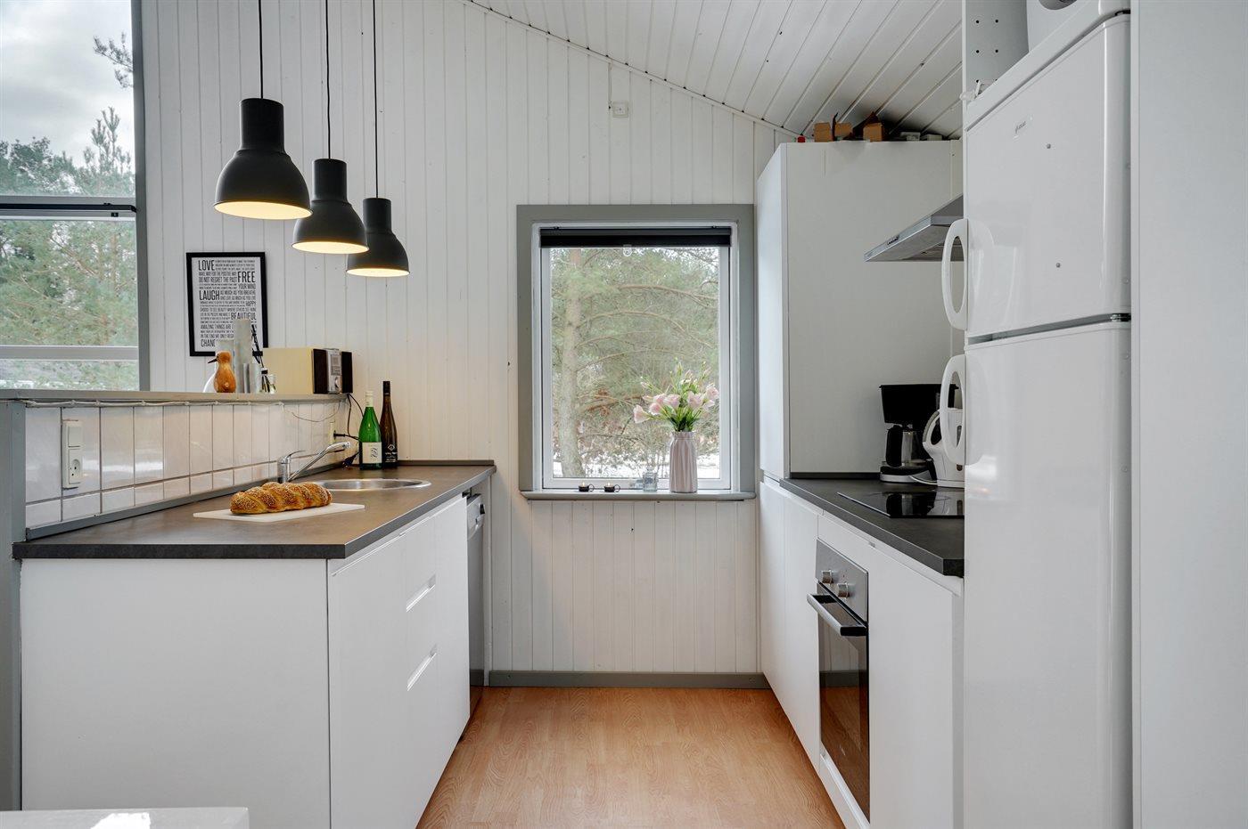 Køkkenet er udstyret med 1 køleskab. Der er 4 keramiske kogeplader, varmluftovn, mikrobølgeovn samt opvaskemaskine.