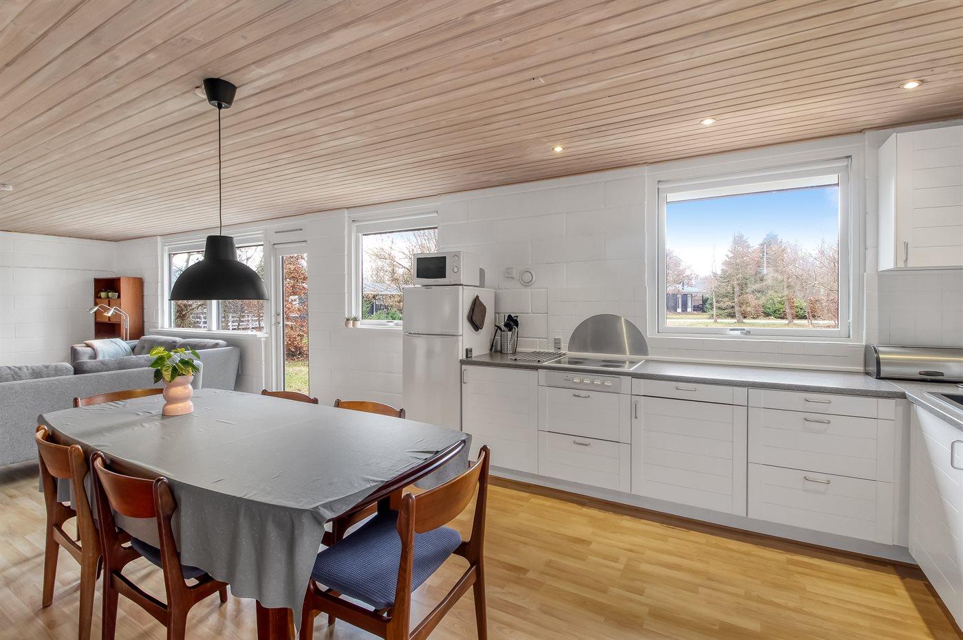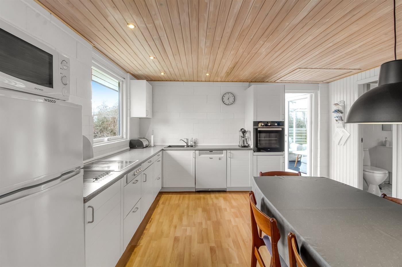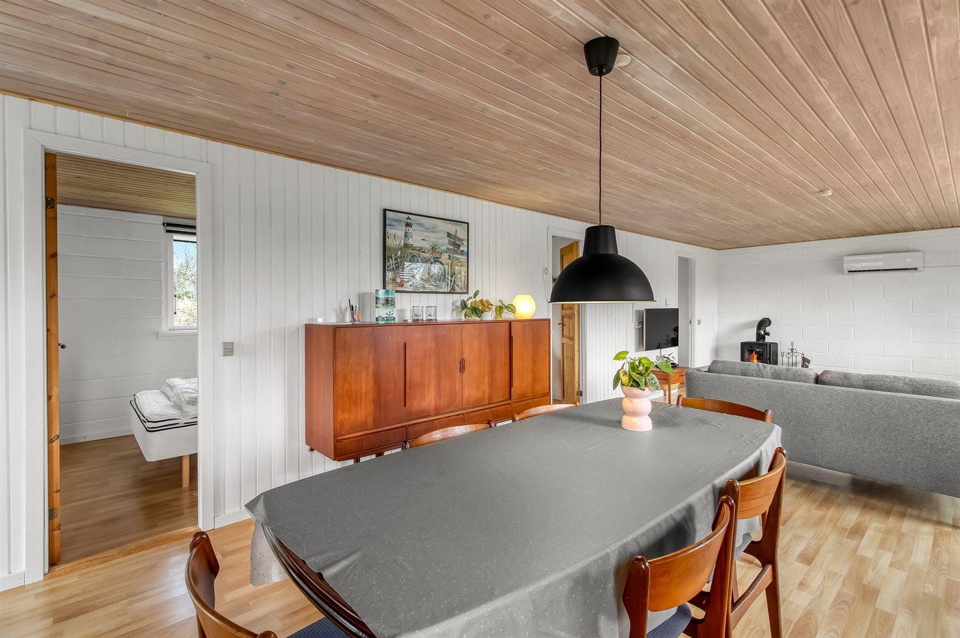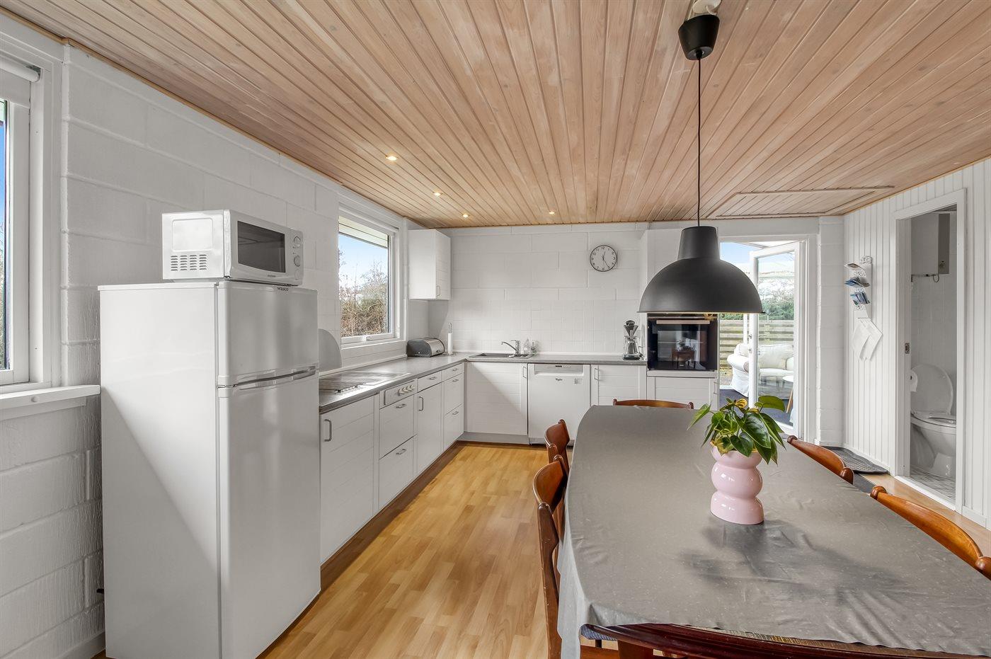 Indvendig fremstår sommerhuset lyst og indbydende. Husets hjerte er det fine køkken/alrum og stue i ét. Sommerhuset er godt indrettet, og her er god plads til f.eks. en børnefamilie, som ønsker at tage bedsteforældrene med på ferie - mulighederne er mange i dette sommerhus.