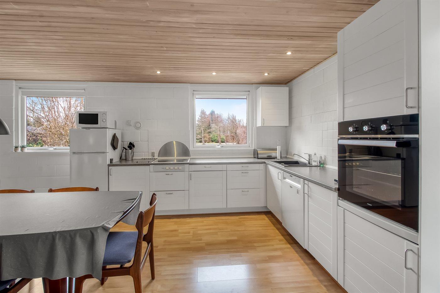 Køkkenet er udstyret med 1 køleskab. Der er 4 keramiske kogeplader, varmluftovn, mikrobølgeovn samt opvaskemaskine.