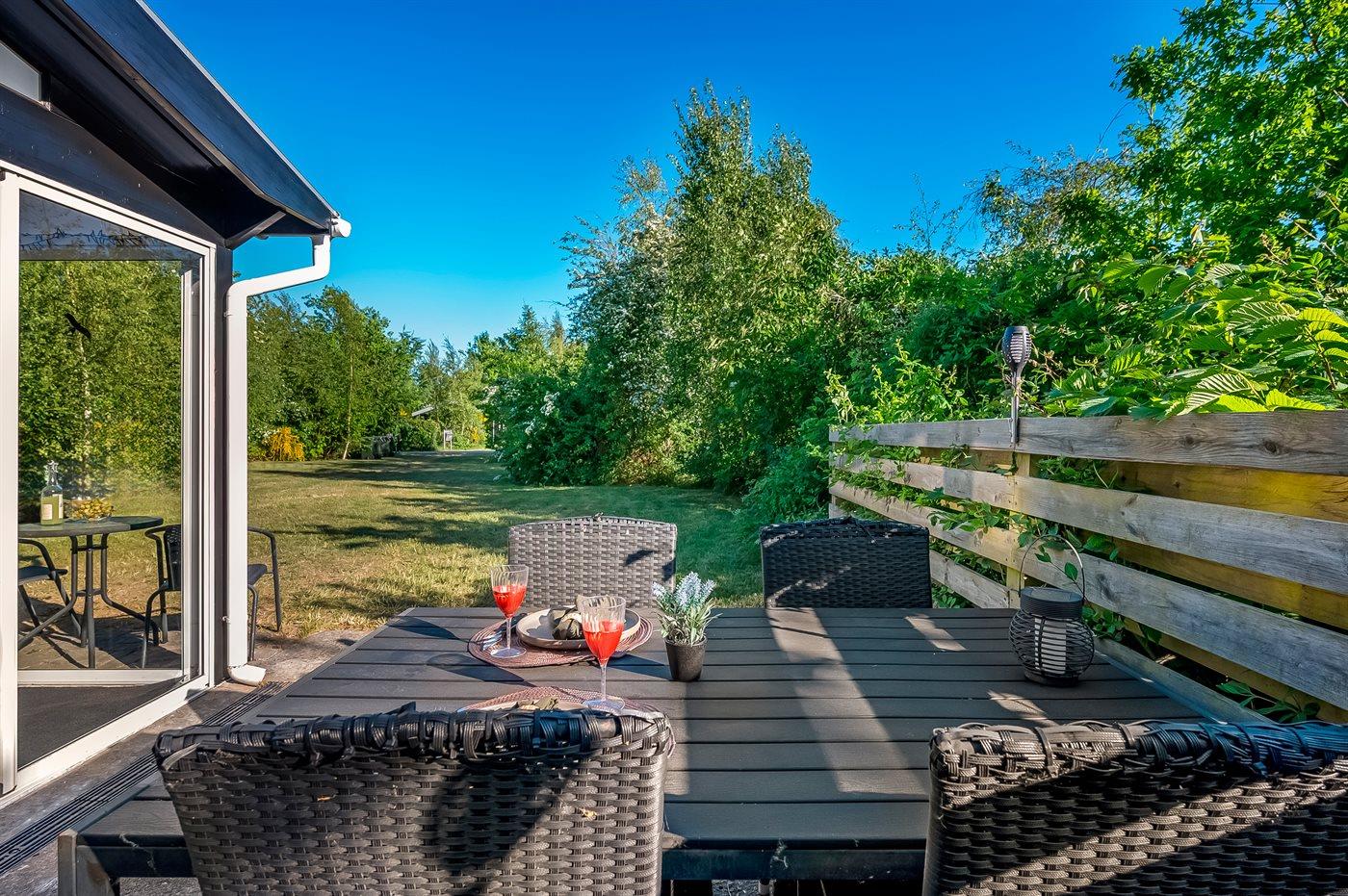 Sommerhuset ligger på en dejlig grund med passer af plads til at boltre sig. Der er et skønt terrasseareal, hvorfra det er muligt at nyde solen og samtidigt have et godt overblik over haven, imens børnene hygger sig. Her er ligeledes en skøn udestue, som er med til at forlænge de dejlige sommeraftener. Tilmed ligger sommerhuset ugenert på den store grund, hvor det altid er muligt at finde en lækrog og nyde de rolige omgivelser.
