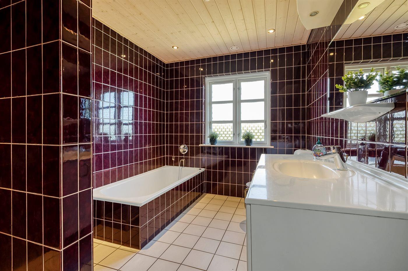 Der er 2 badeværelser med bruseniche og 3 toiletter, heraf 1 gæstetoilet. Der er gulvvarme på 2 badeværelser. Der er gulvvarme på gæstetoilettet.