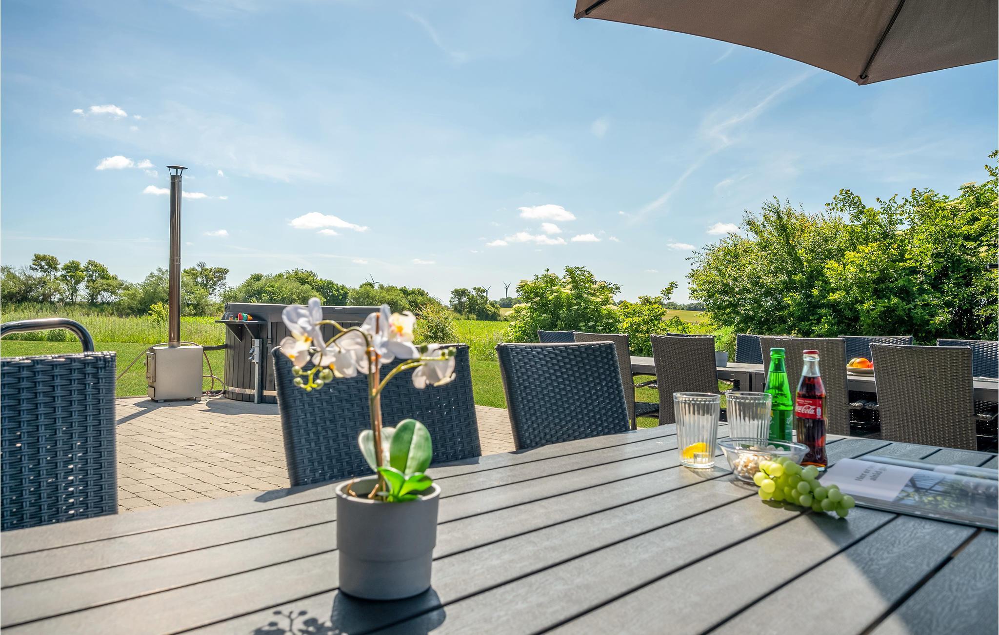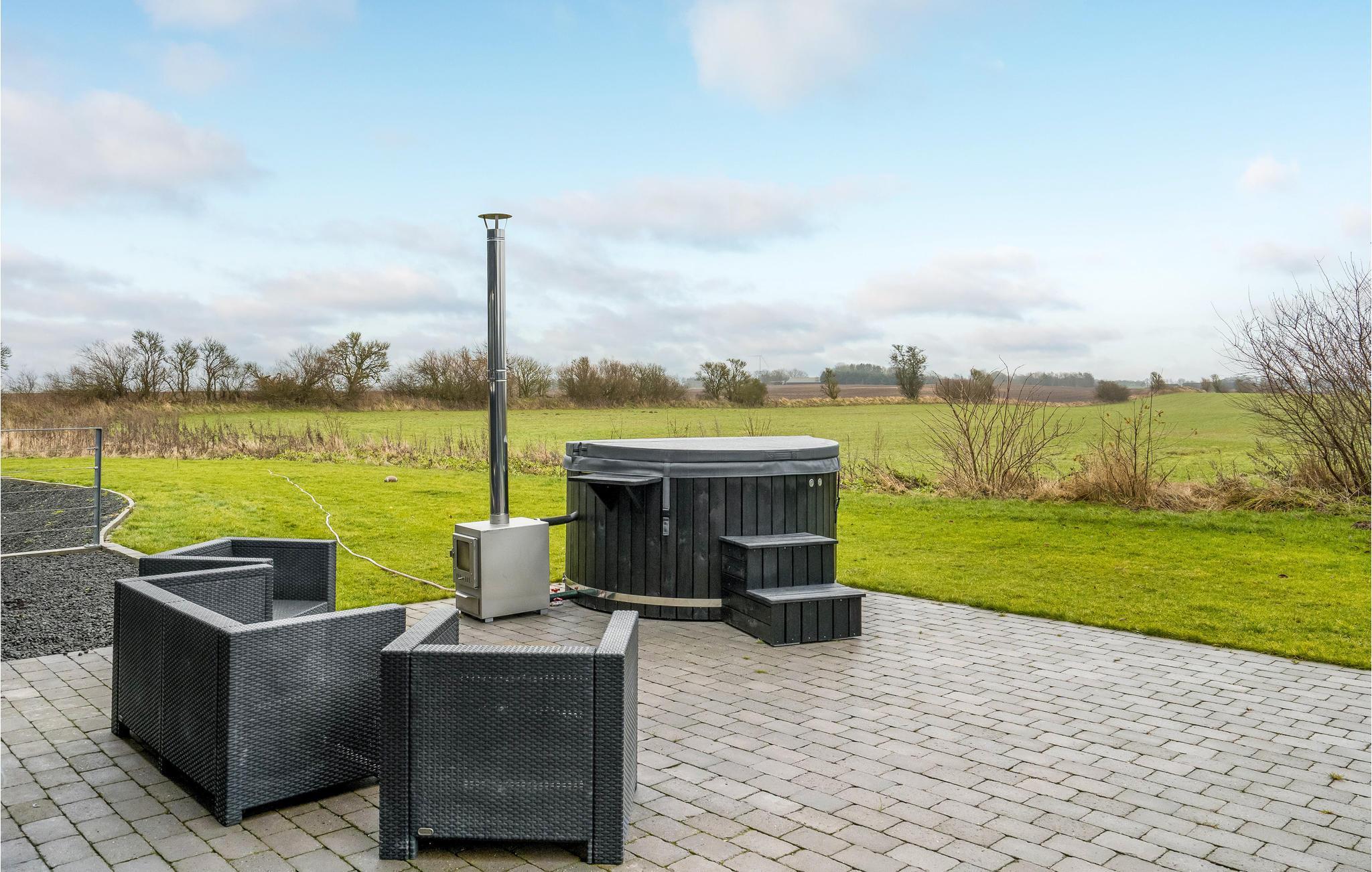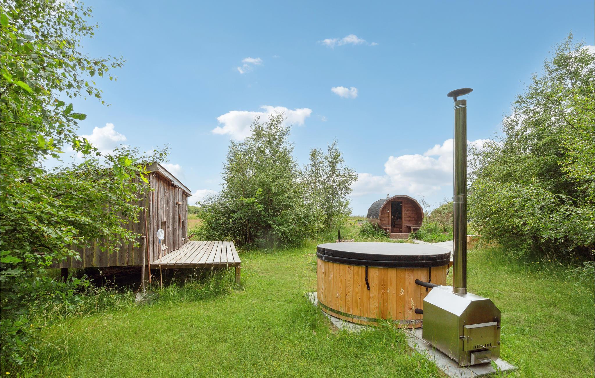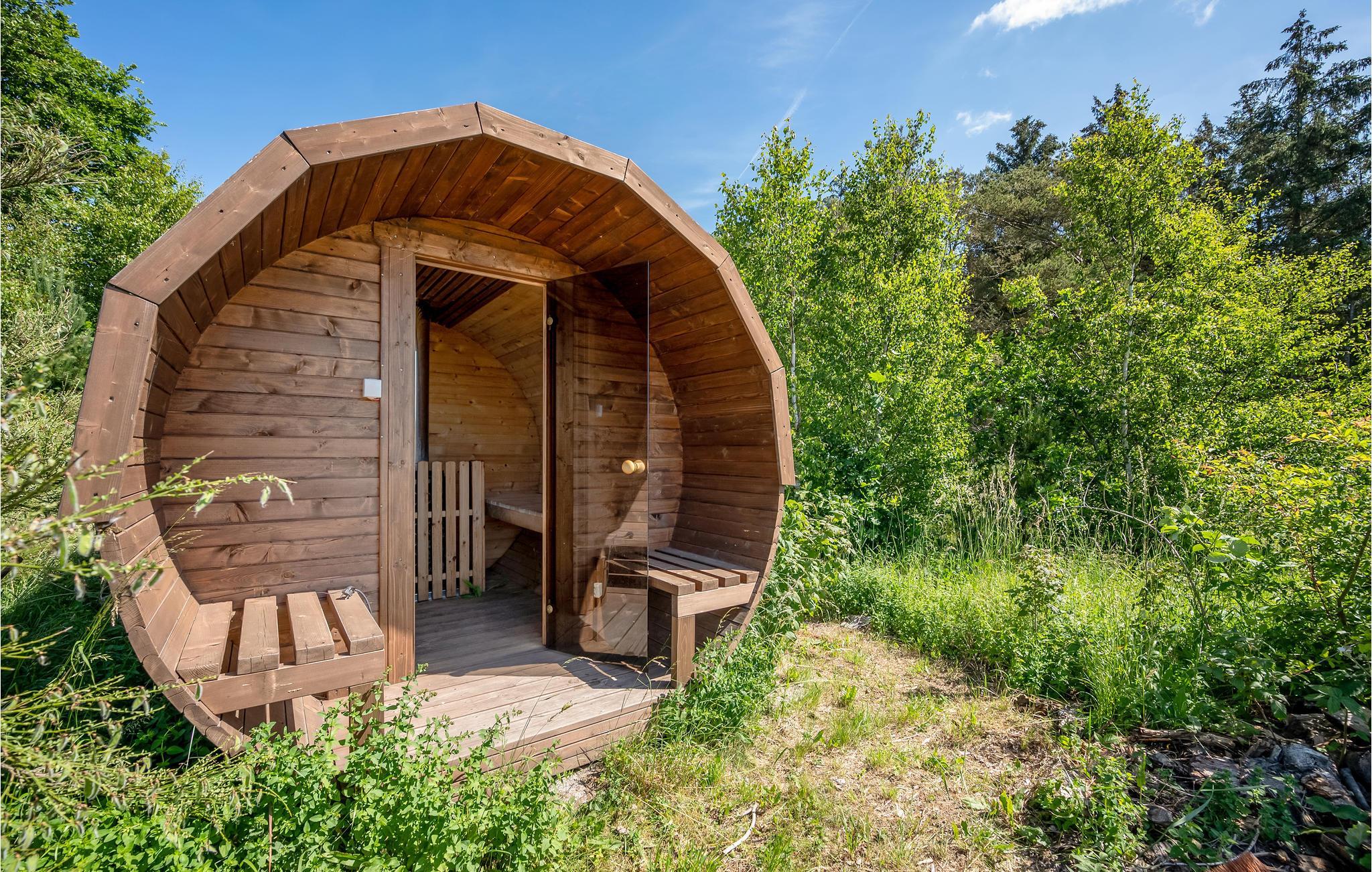 Slap af på terrassen i haven. Her kan I spise morgenmad og senere afslutte dagen med et godt glas vin. I haven finder I et fantastisk område med "wildmarks-wellness" i form af et finsk vildmarksbad, koldtvandsbad og en tøndesauna til 8 personer, så her er det let at komme helt ned i gear og glemme alt om hverdagen. Ved siden af vildmarksbadet er der et virkelig dejligt, lukket og isoleret shelter til 5/6 personer med 100 mm isolering, der gør, at man kan holde varmen i det. Her kan I også samles om bålpladsen og riste skumfiduser over den åbne ild. Sommerhuset ligger på en ugeneret grund på 2,5 hektar, hvor I er langt fra naboer og virkelig kan nyde en privat ferie.