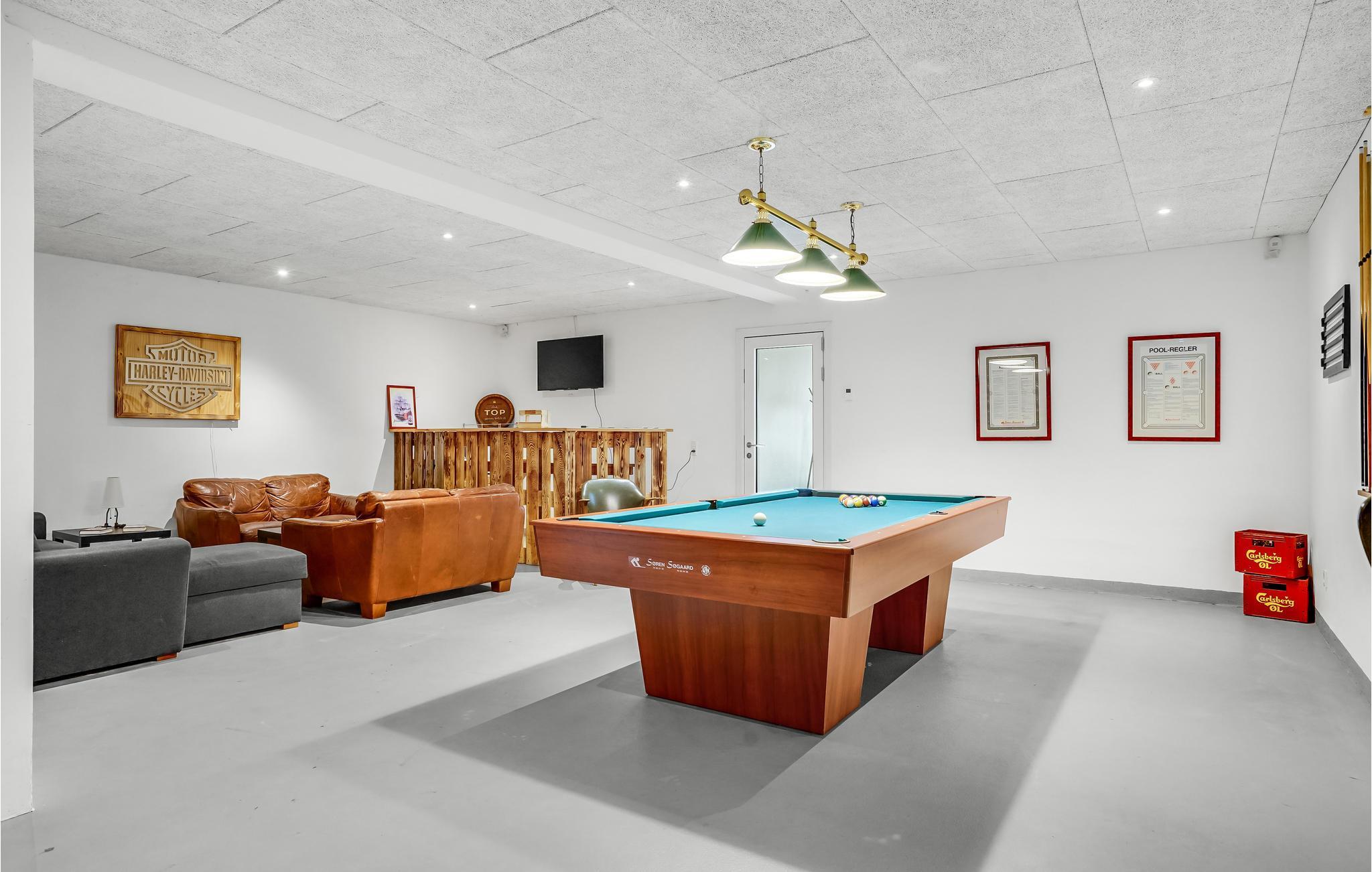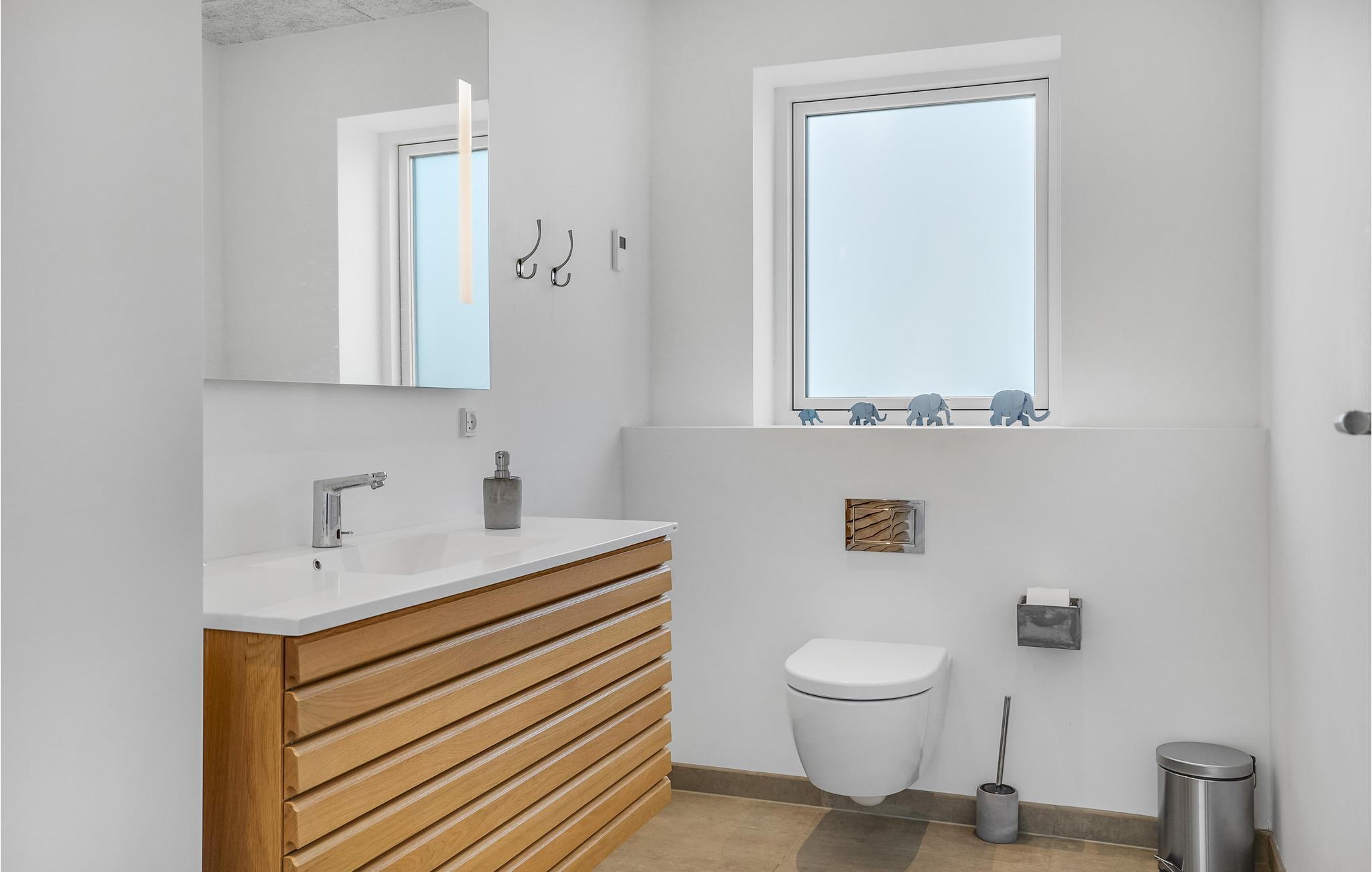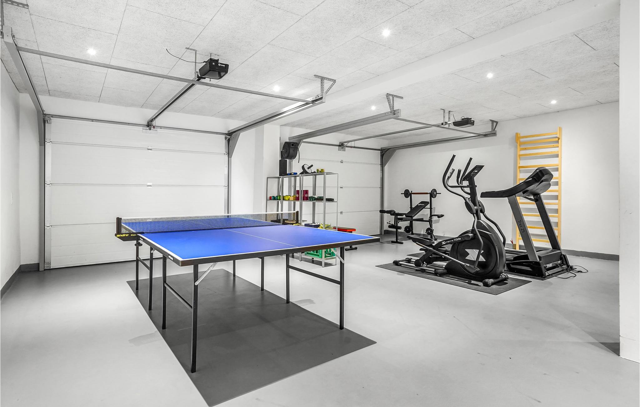 Huset er lyst og komfortabelt indrettet og skaber perfekte rammer for et ophold, I vil huske med glæde. Der er gulvvarme i hele huset, så det er behageligt hele året rundt. Huset har 5 værelser med dobbeltsenge, og værelse nr. 6, som ligger i kælderen, har 2 dobbeltkøjer og 2 ekstra madrasser. I aktivitetsrummet i kælderen kan I dyste i billiard, dart og bordtennis, og til jeres børn er der diverse legeredskaber, de kan underholde sig med. Her finder I også en attraktiv bar med fjernsyn, hvor I kan hygge jer. I kælderen finder I også træningsfaciliteter og arkademaskine, så her er underholdning til enhver smag.