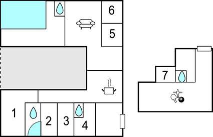 Soveværelse (nr. 7) - 2 Sovepladser. (Dobbeltseng(e)). 1 Soveplads. (Etageseng(e)). 2 Sovepladser. (Sofa, madras eller lignende).