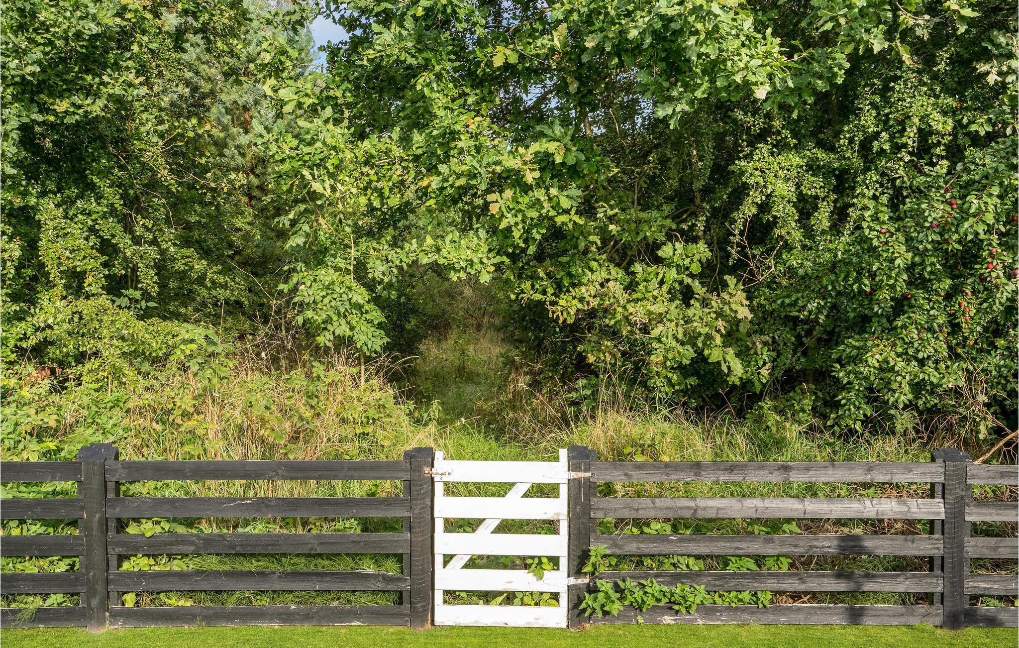 Den indhegnede have er omgivet af gamle træer, som er en skøn lille oase for både børn og voksne. Nyd den fredfyldte atmosfære på terrassen, mens børnene gynger, og jeres hunde snuser rundt på grunden.