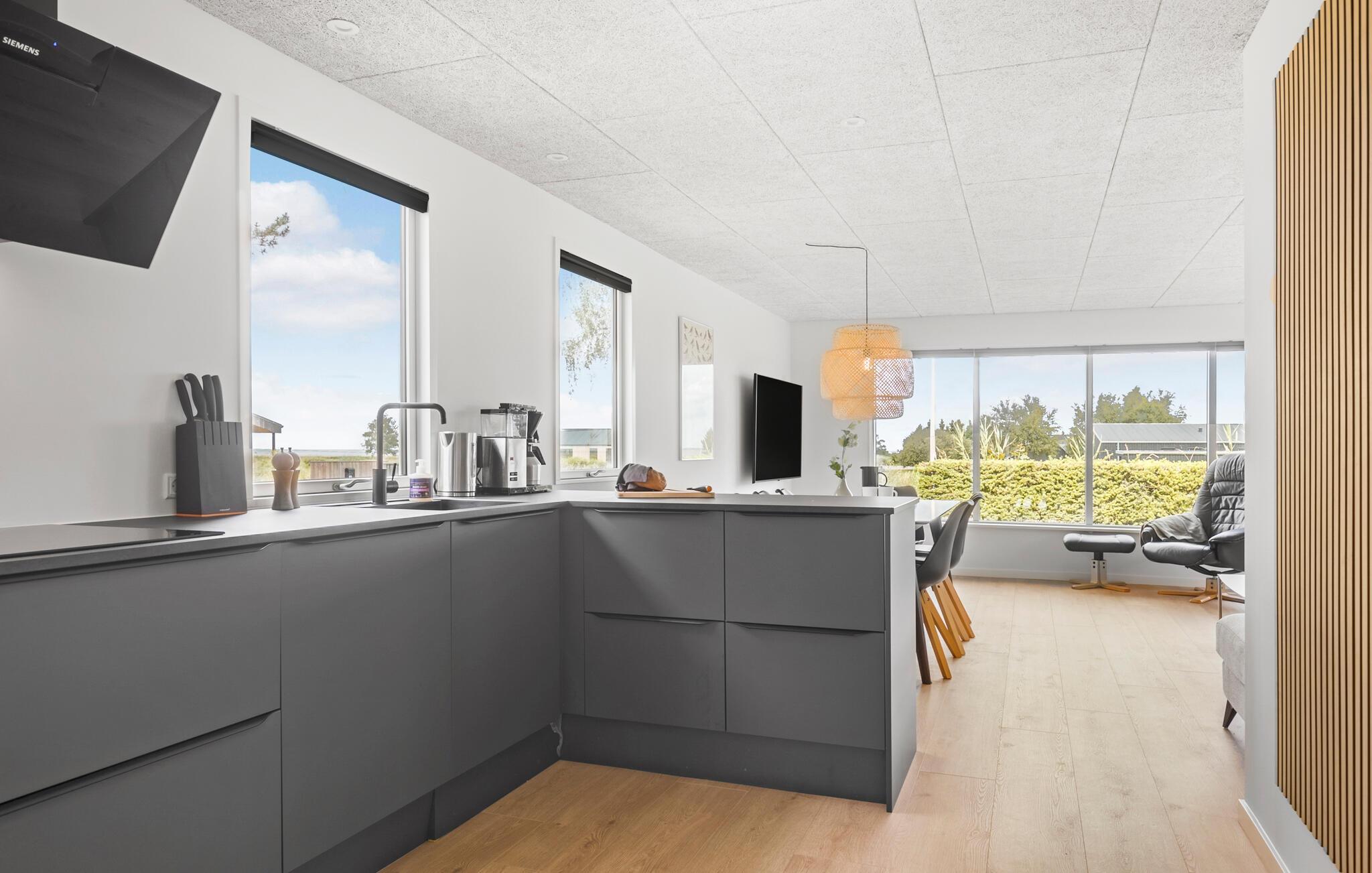 Nyd jeres ophold i dette kompakte feriehus i St. Sjørup. Her finder I alt hvad I behøver til en ubekymret ferie på Kattegatkysten. Nyd udsigten over havet fra stuen og terrassen og diskuter jeres udflugter og aktiviteter for den kommende dag over morgenmaden.