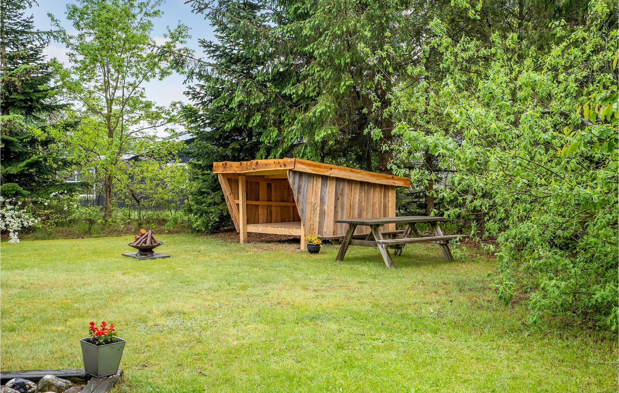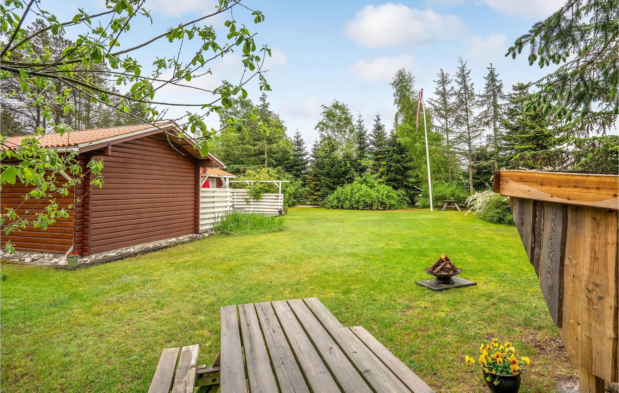 Velholdt sommerhus i St. Sjørup med stor terrasse, tæt på naturstrand og skov, ideelt for familieferie ved Kattegat.