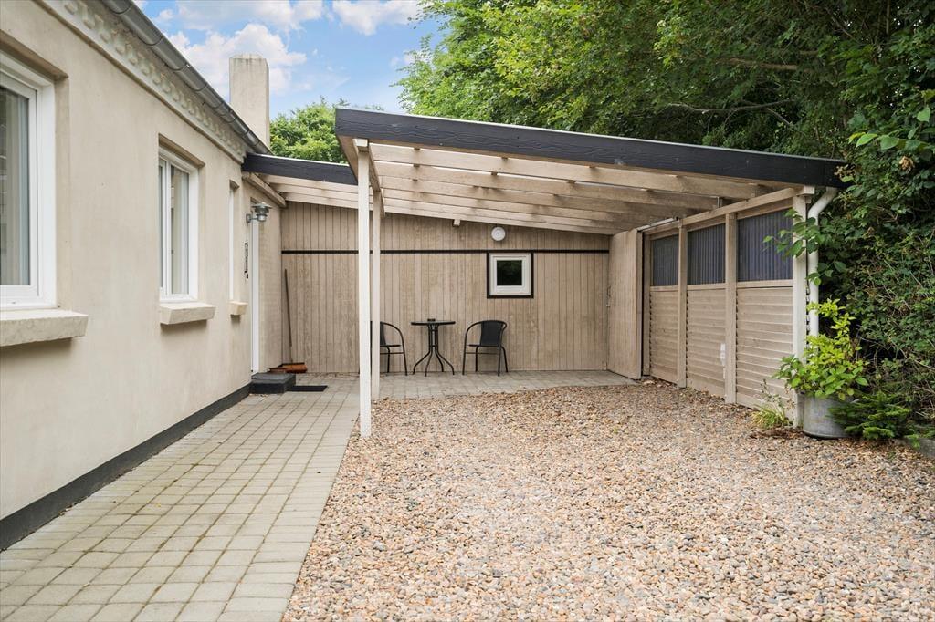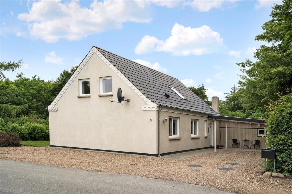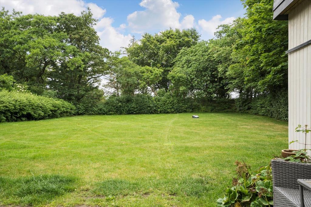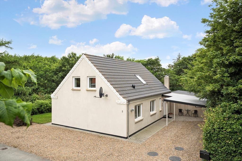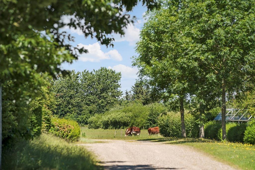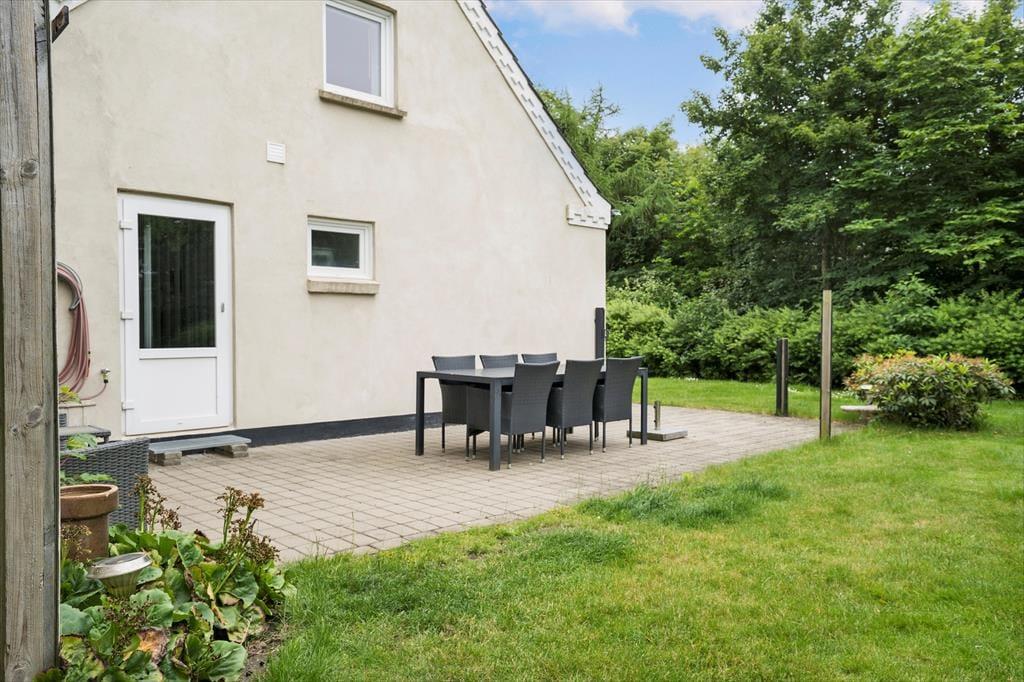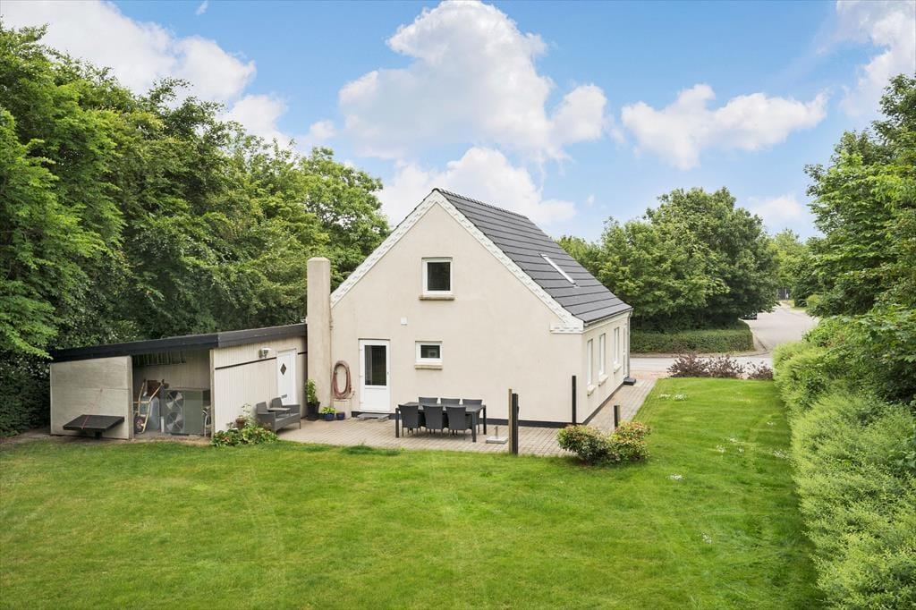 Den dejlige grund med en nyanlagt have er omkranset af store træer, som giver en masse dejligt læ til grunden. På grunden er der både plads til leg og sjov, en fodboldkamp eller blot hygge i solens stråler. Når dagen går på hæld og sulten begynder at indfinde sig kan I smide et par lækre bøffer og grøntsagsspyd op grillen og nyde den lækre duft af mad der stiger op og blander sig med den friske luft, fuglenes sang og det fantastiske skær solen der langsomt går ned giver, her er der tid til afslapning for hele familien.