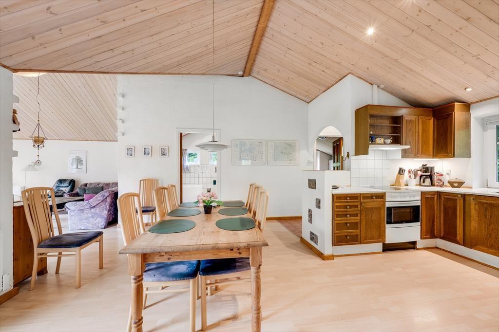 Sommerhus i Vedersø Klit Strand, Vestjylland, med plads til 6 voksne og 2 husdyr. Der er en hyggelig indretning med bl.a. brændeovn, og du finder desuden vaskemaskine, opvaskemaskine og tørretumbler i boligen.
