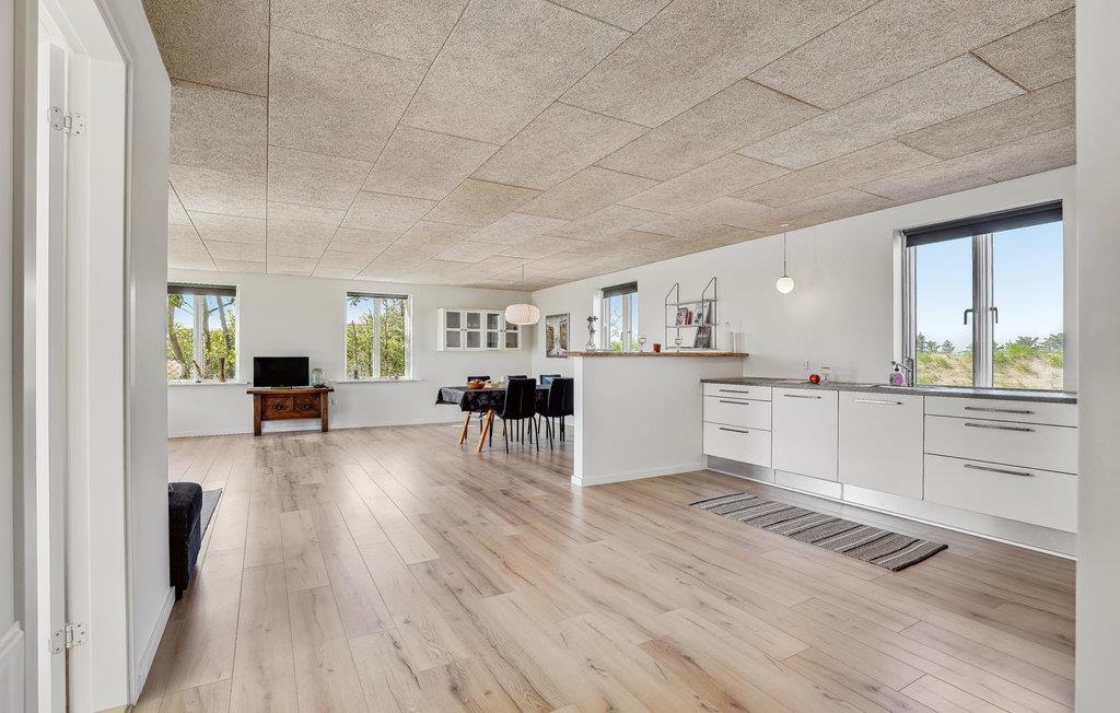 Velkommen til en familieferie i Vestjylland, hvor I kan få jeres base i denne velindrettede villa, som ligger i Brunbjerg. Fyld dagene med hyggelige udflugter og vend hjem til huset, hvor I kan samles om madlavningen, brætspil og bøger inde eller udendørs. Huset er lyst, moderne og veludstyret med gode faciliteter, så I kommer ikke til at mangle noget. Opholdsrummet bliver centrum for alle de fælles aktiviteter og har adgang direkte ud til en solterrasse, hvor I kan nyde dagens måltider. Efter dagens udflugter kan I læne jer tilbage i vildmarksbadet og lytte til en lydbog, mens børnene leger på græsplænen.