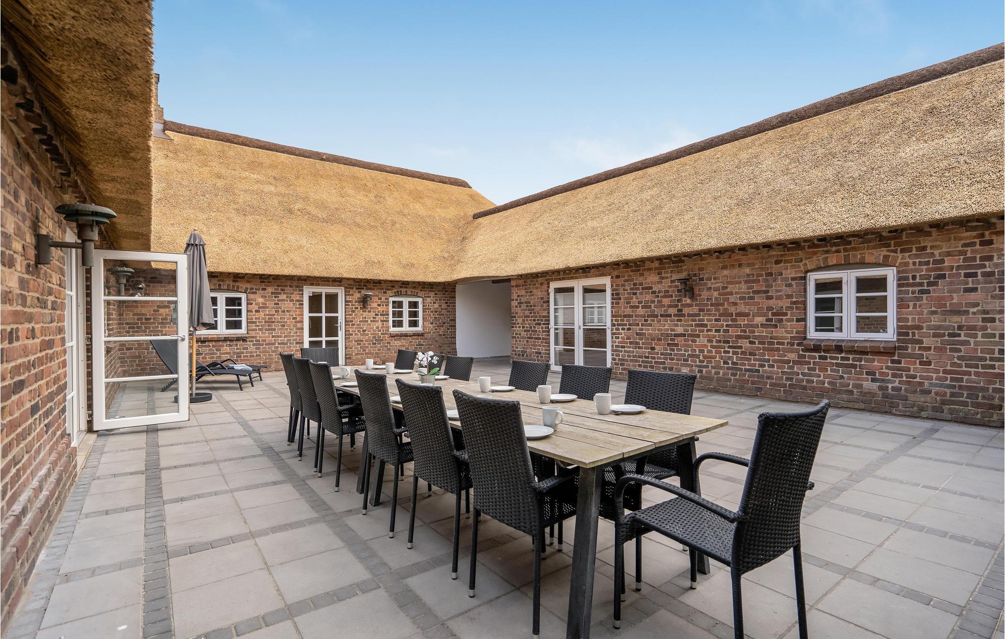 Hvis I går efter en mindeværdig ferie med lidt ekstra forkælelse, så er det oplagt at vælge denne firelængede gård som jeres base. I den ene fløj af huset er der en stor pool med modstrømsanlæg og spabad, hvor I kan slippe børnene løs. Der er også en bar og en stor sauna, hvor I kan nyde en tiltrængt pause efter dagens eventyr. Huset emmer af kvalitet, og det store, flotte køkken er forbundet til en meget smagfuld spisestue, som har muret pejs og udgang til haven. Her kommer I til at tilbringe mange hyggelige stunder med madlavning, måltider og afslapning. I tv-stuen på 1. sal kan I nyde den smukke udsigt over landskabet eller snuppe et spil billard. Den hyggelige gårdhave har god plads til flere familier, og terrassen lægger op til de skønneste sommermiddage. Børnene kan spille beachvolley, boccia og fodbold, og huset har gode rammer til en stor gruppe af børn og voksne i alle aldre.