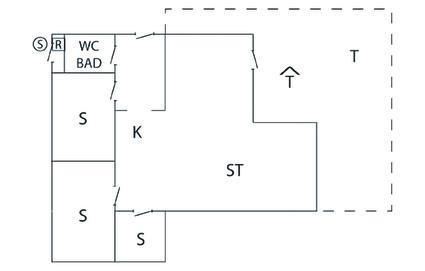 Sommerhuset består af en stor opholdsstue med brændeovn, TV, radio og spiseplads, et åbent, veludstyrret køkken, et flot badeværelse og to gode soveværelser samt et mindre et. Til huset hører en dejlig stor, delvist overdækket terrasse med havemøbler og en grill, så I kan tilberede lækre feriemåltider. Den dejlige have har en hyggelige bålplads og masser af plads til leg. Huset har varmepumpe og gratis trådløst internet (hurtigt og ubegrænset). Der er tørretumbler i udhuset.