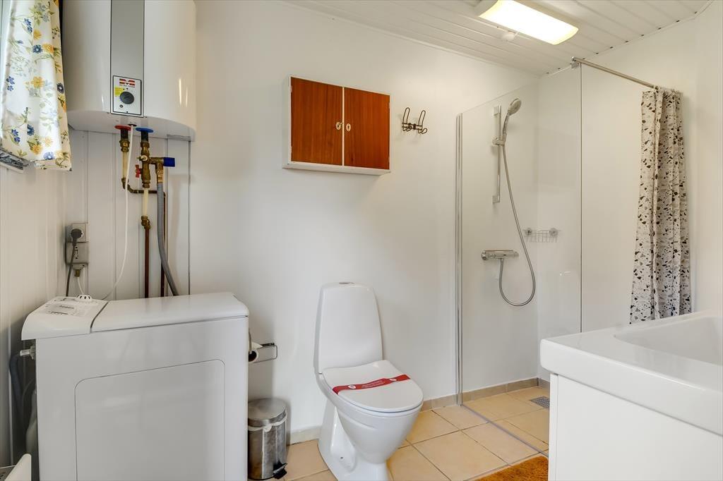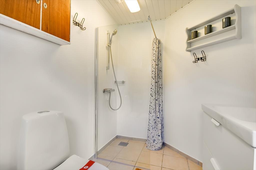 Inden døre i det klassiske træsommerhus er atmosfæren helt i top – ikke mindst i opholdsrummet, hvor et pænt køkken er integreret med stuen. Her er der god plads til at hygge sig med madlavningen, og efterfølgende kan I nyde lækkerierne ved spisebordet, mens I vender dagens små og store oplevelser. Inden I rykker over i sofaen, kan I tænde op i brændeovnen, og varmepumpen kan også tages i brug, hvis temperaturen skal reguleres yderligere. Sommerhuset byder også på tre soveværelser, hvoraf to er indrettet med dobbeltseng og det tredje med en dobbelt sovesofa, og på badeværelset er der både bruseniche og vaskemaskine, så både I selv og jeres tøj kan blive frisket op i løbet af ferien.