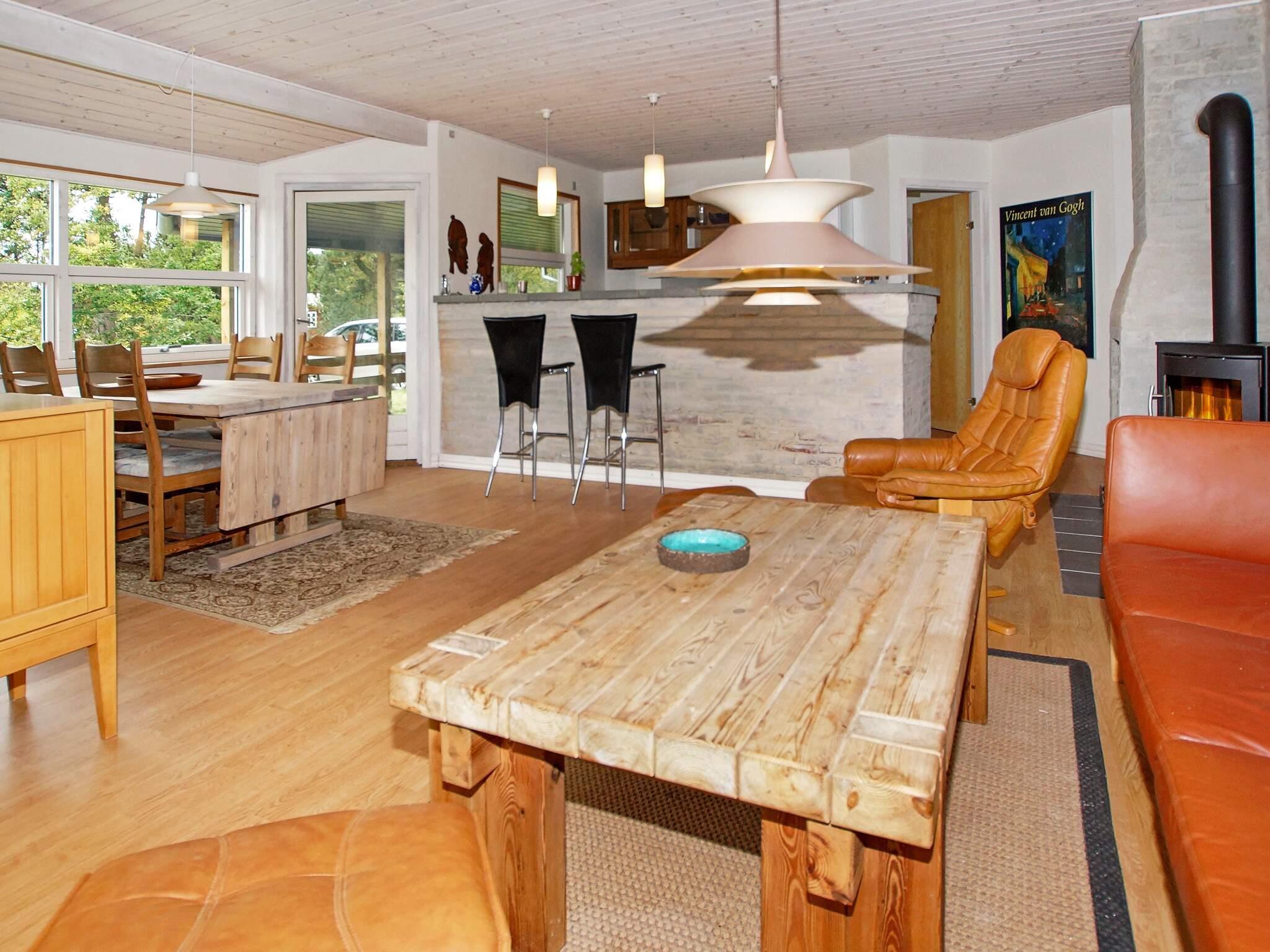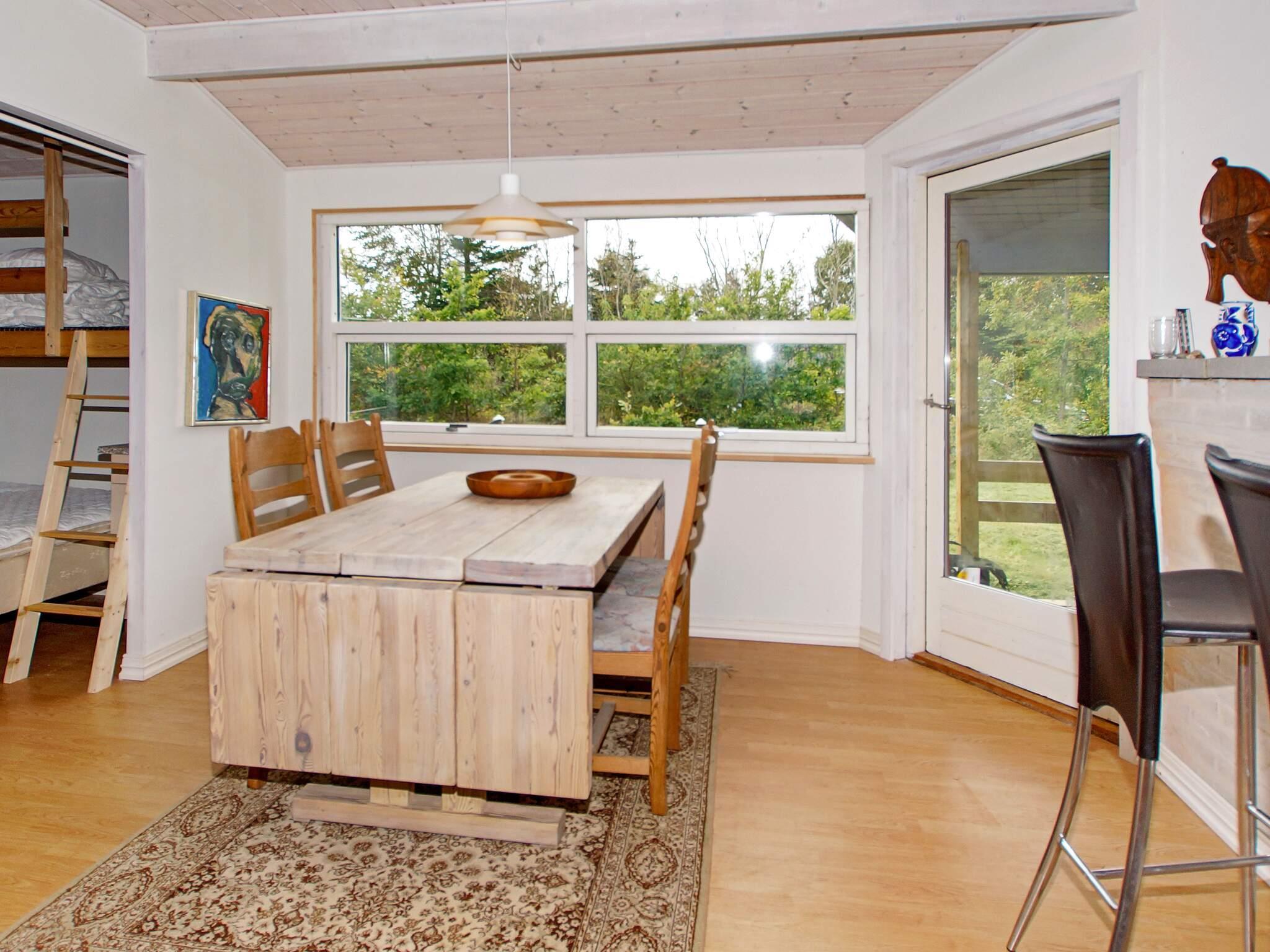 Sommerhus med personlige linjer beliggende midt i en lille oase på en lukket grund med træer og buske rundt om huset. Alkoven er rigtig fin som mulighed for legested for de mindste. Huset ligger ca. 400 m fra Ringkøbing Fjord, som er et af Europas bedste surfområder både til windsurfing og kitesurfing.