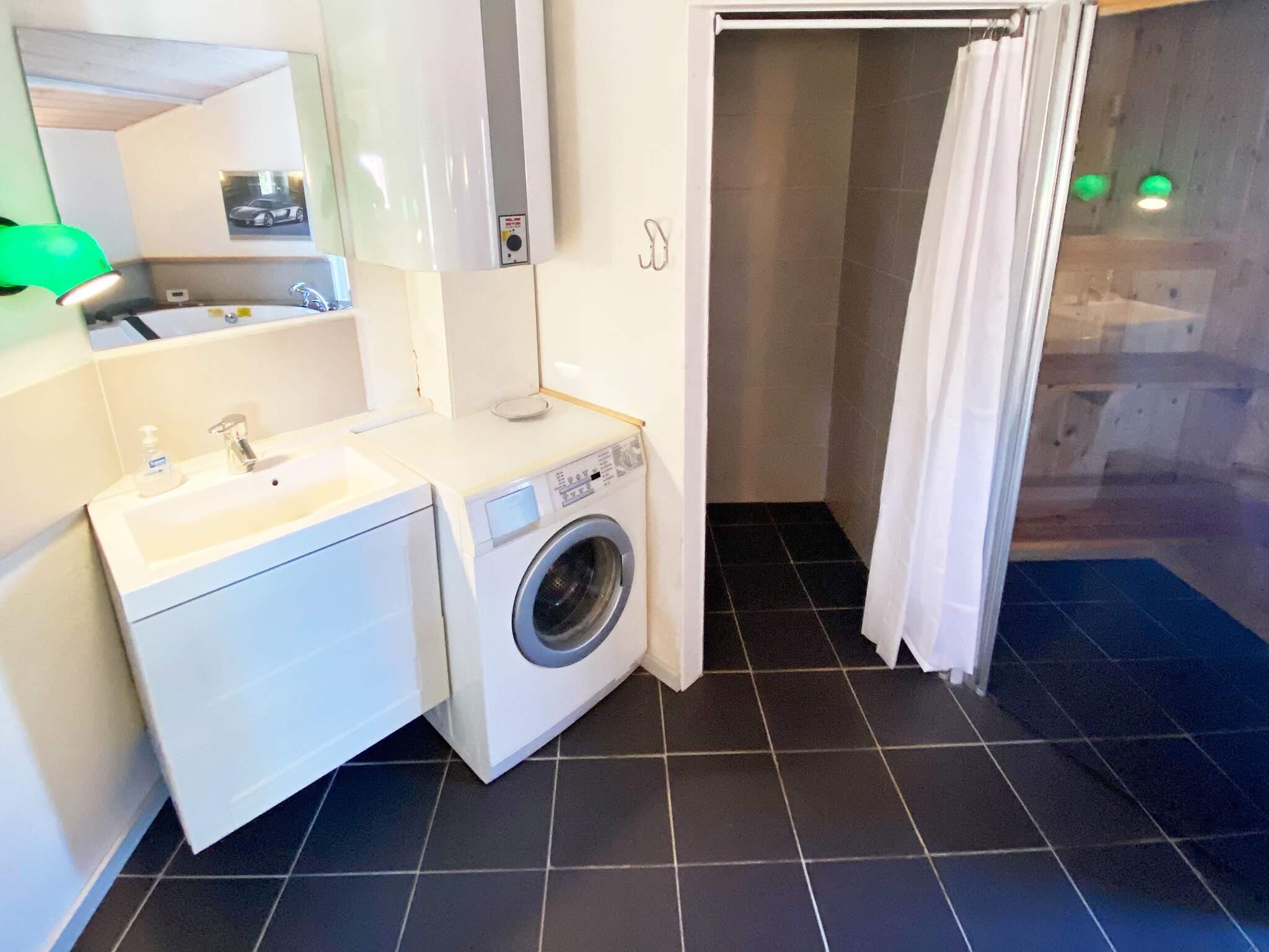 Bad/wc: Vaskemaskine, wc, håndvask, bruseniche