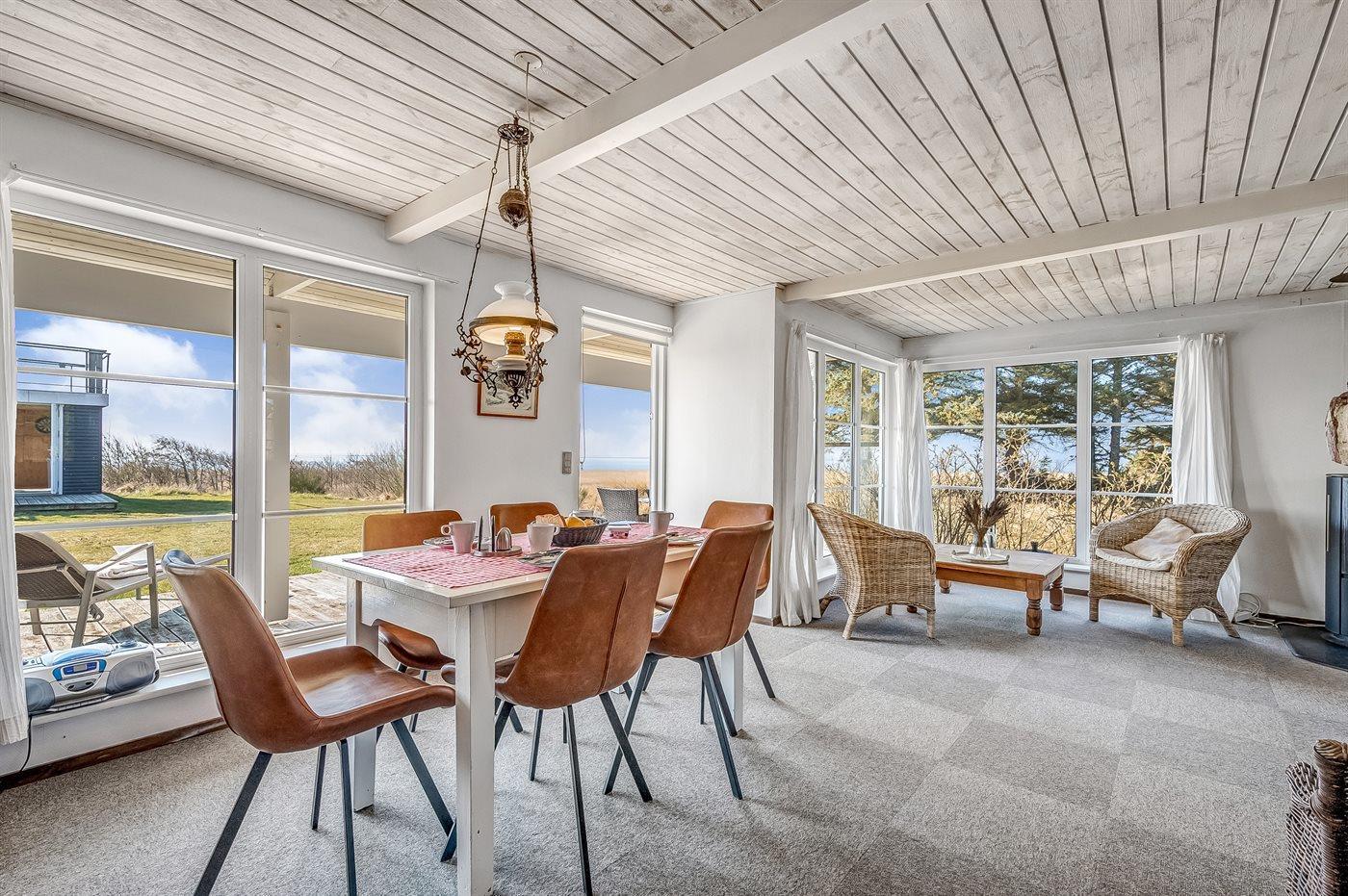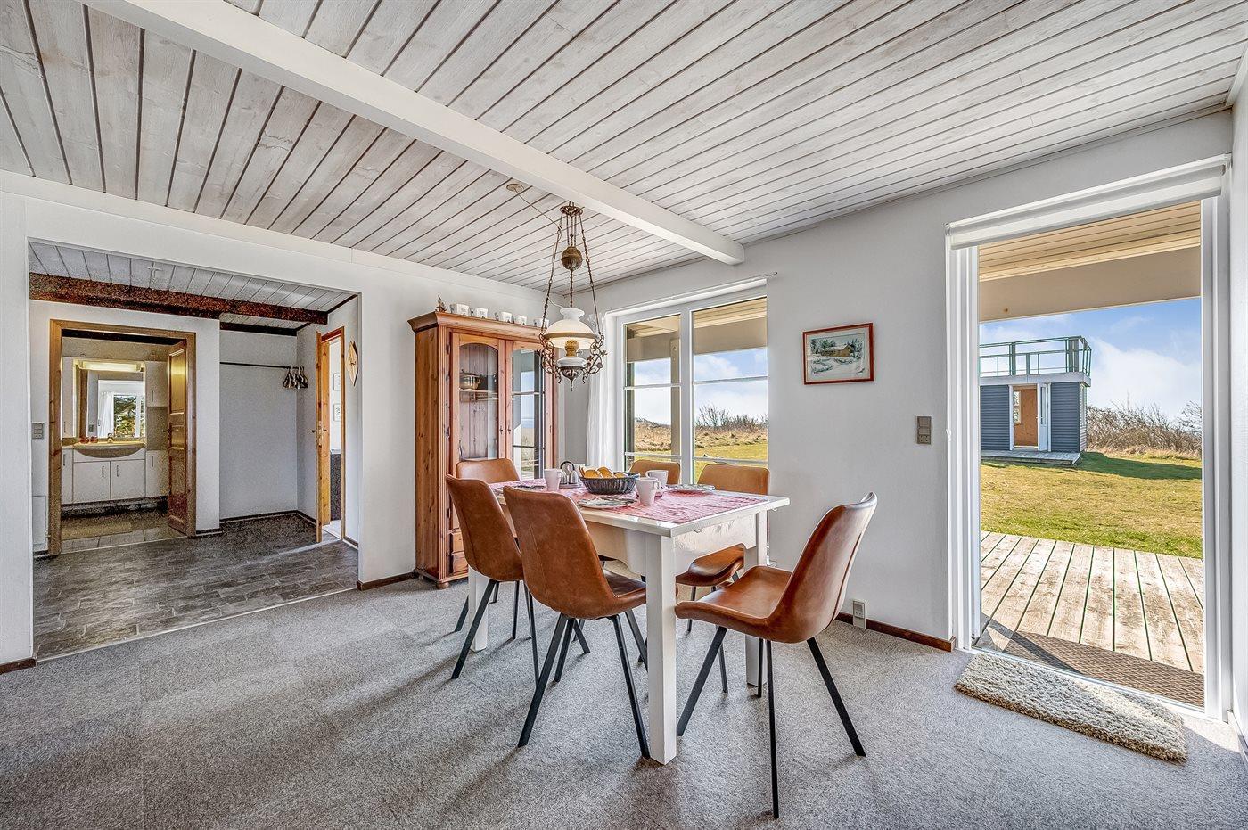 Med områdets vel nok bedste beliggenhed - i yderste række ud mod Ringkøbing Fjord - finder I dette skønne sommerhus (helårsisoleret). Et sommerhus med god plads og en skøn beliggenhed, hvor I kan nyde udsigten og solnedgangen over Ringkøbing Fjord fra såvel huset som fra tagterrassen. En sti fører direkte ned til fjorden, hvor I kan gå ture og nyde det rige dyre- og fugleliv. Få min. kørsel til den lille havn i Stauning, hvor der er hygge og atmosfære, restaurant og kunstigt anlagt soppestrand, velegnet til børn.