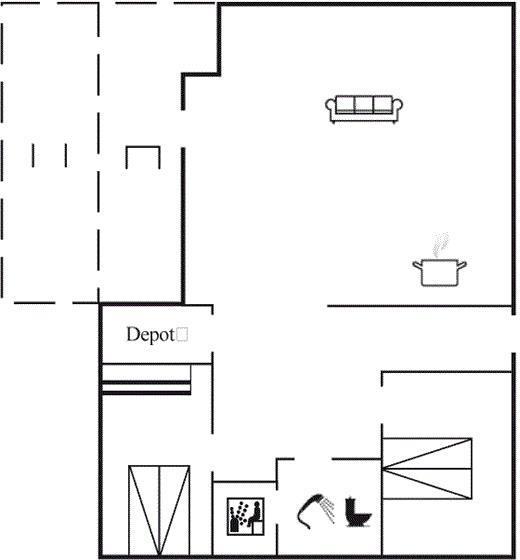 Der er 1 badeværelse med bruseniche og 1 toilet. I saunaen er der mulighed for afslapning.
