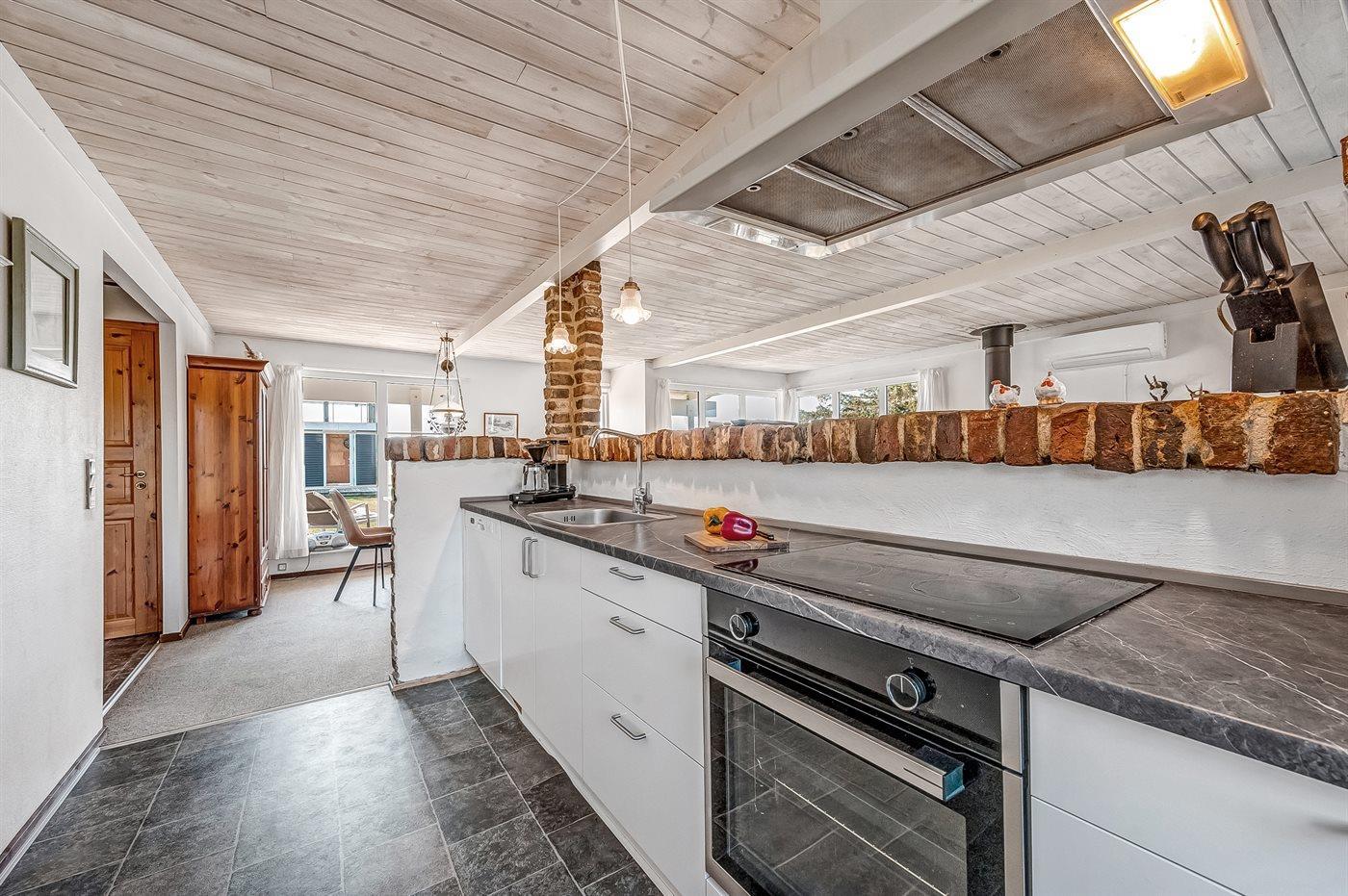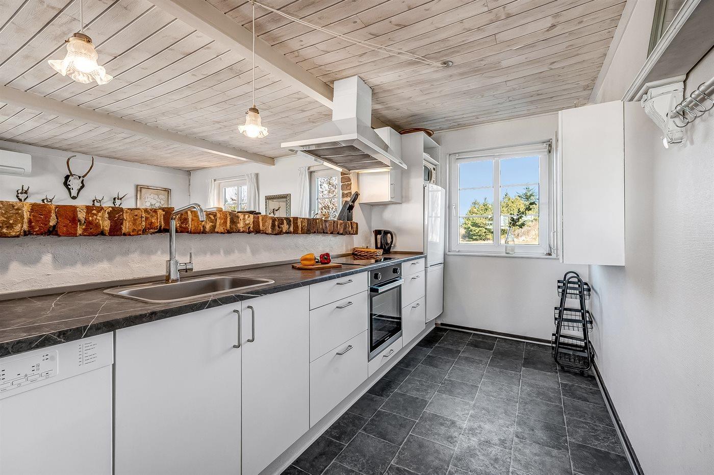 Køkkenet er udstyret med 1 køleskab. Der er 4 keramiske kogeplader, bageovn, mikrobølgeovn samt opvaskemaskine.