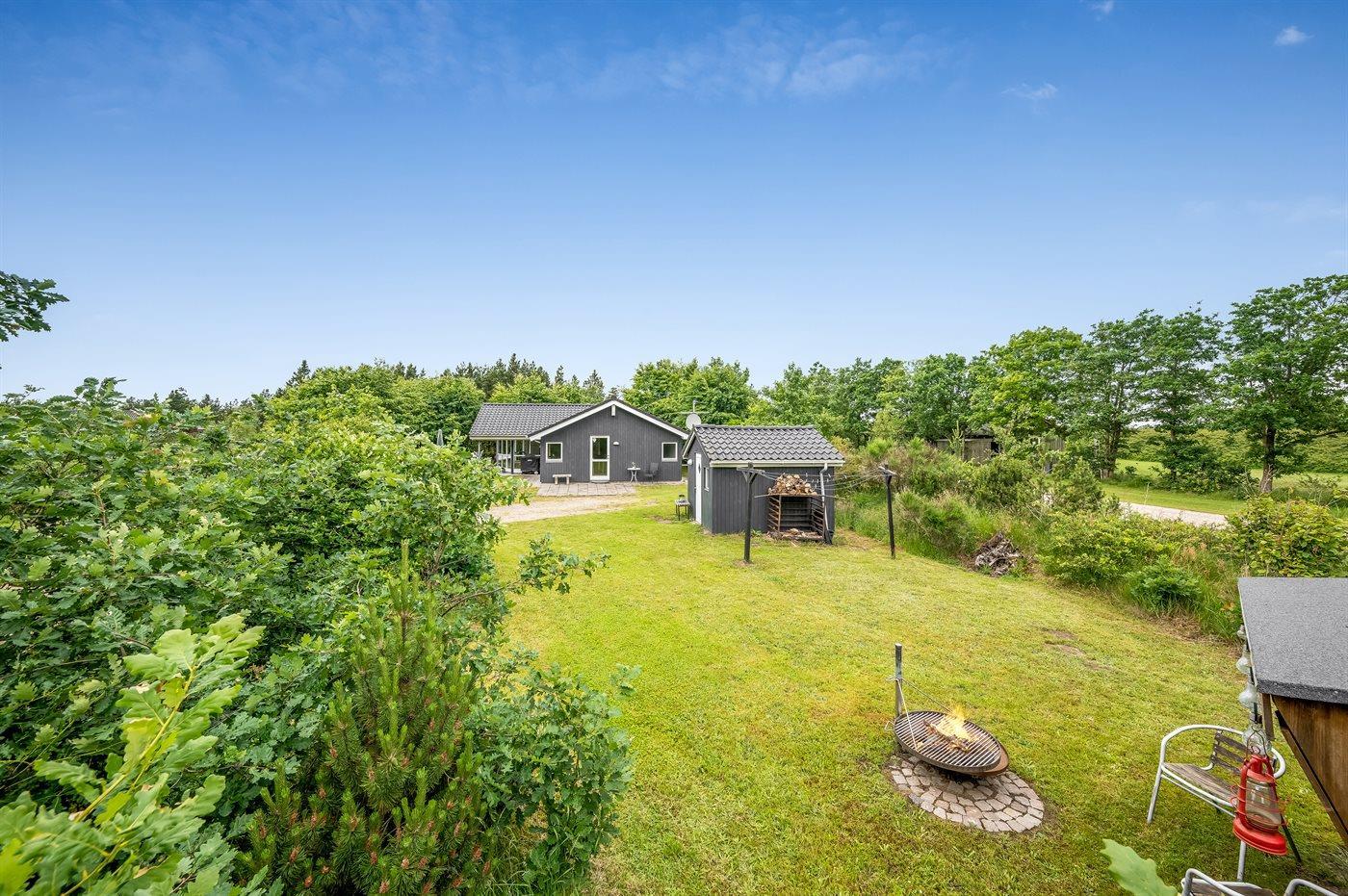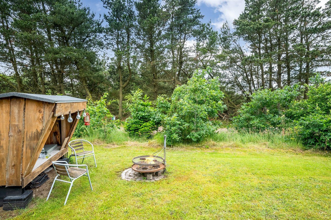 Ferieboligen er beliggende på en 1100 m² stor naturgrund. Der er 400 m til fjorden. Nærmeste forretning er beliggende i en afstand af 4500 m. Til ferieboligen hører 40 m² terrasseareal. Shelter. Parkering ved ferieboligen.