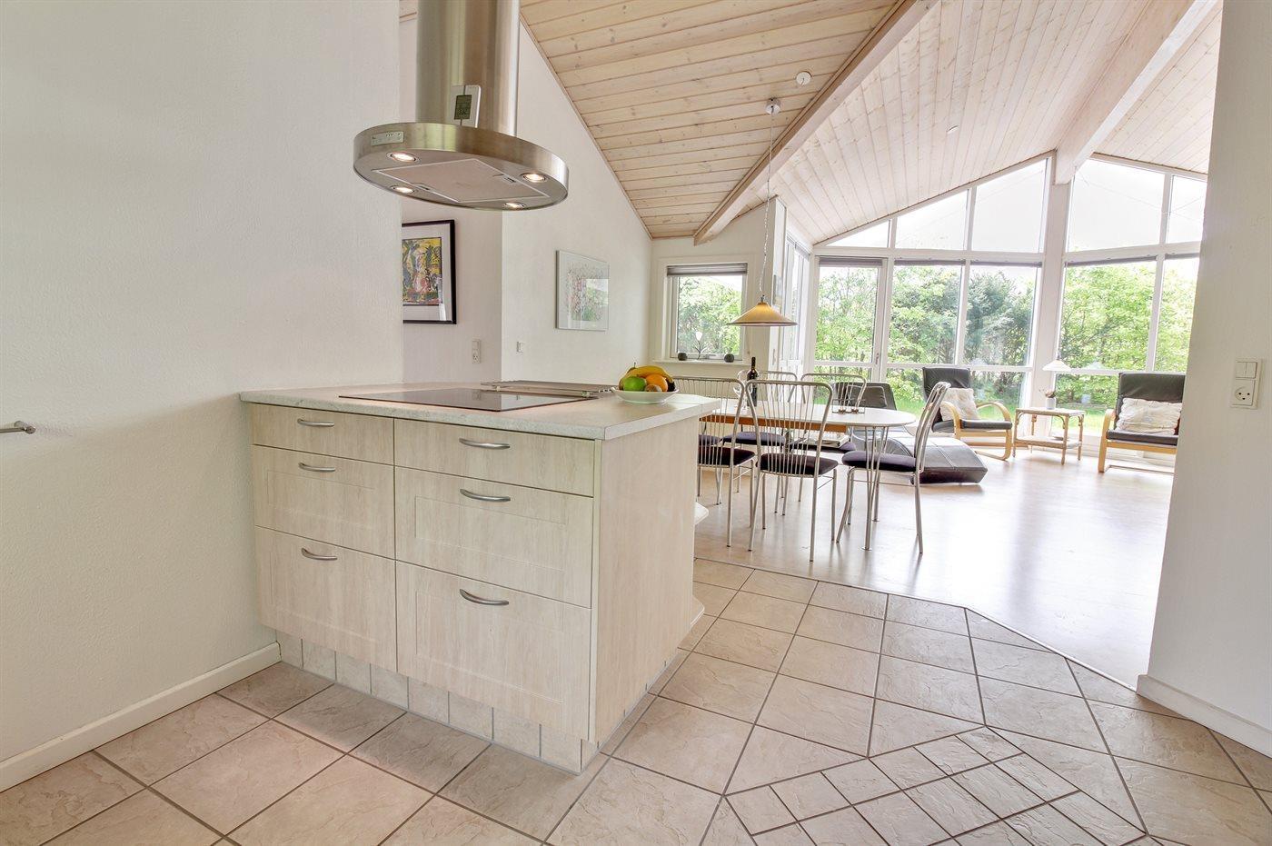 Køkkenet er udstyret med 1 køleskab. Der er 4 keramiske kogeplader, varmluftovn, mikrobølgeovn samt opvaskemaskine.