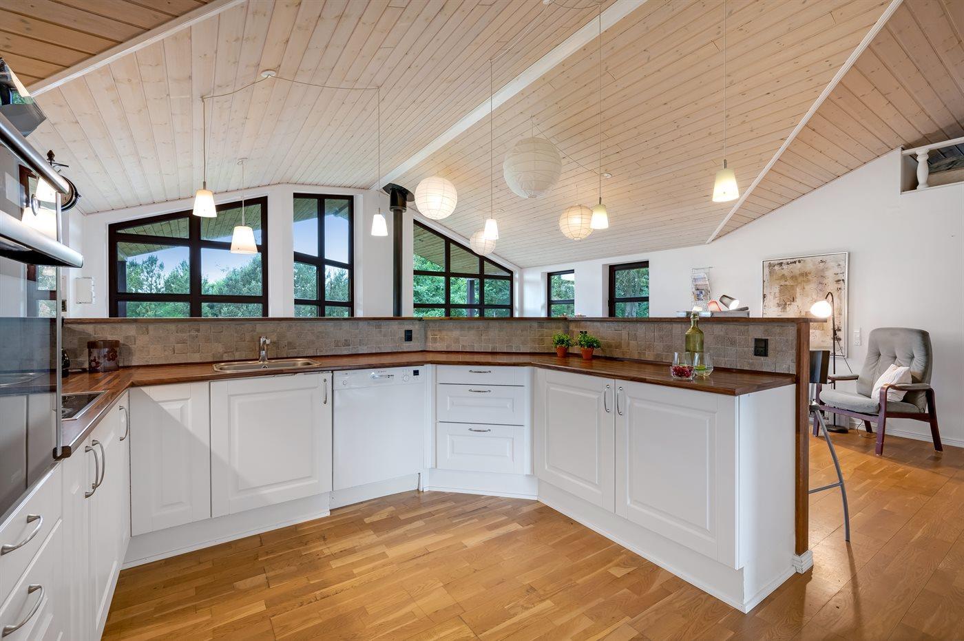 Køkkenet er udstyret med 1 køleskab. Der er 4 keramiske kogeplader, varmluftovn, mikrobølgeovn samt opvaskemaskine.